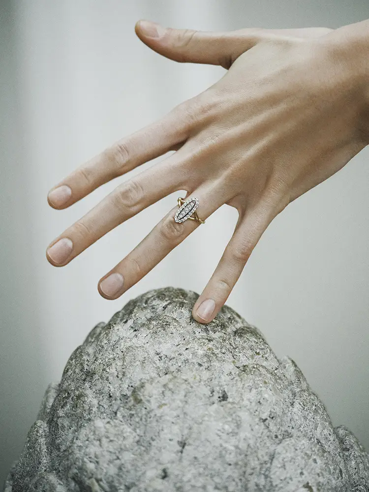 Por primera vez en su historia, Aristocrazy introduce además una colección Studio de anillos de pedida en oro amarillo de 9K con diamante Lab Grown. Esta piedra, creada mediante innovación tecnológica y con la misma belleza y brillo que el diamante tradicional, permite explorar nuevos volúmenes, siluetas más atrevidas y una libertad creativa para redefinir el lenguaje del compromiso contemporáneo al más puro estilo Aristocrazy.