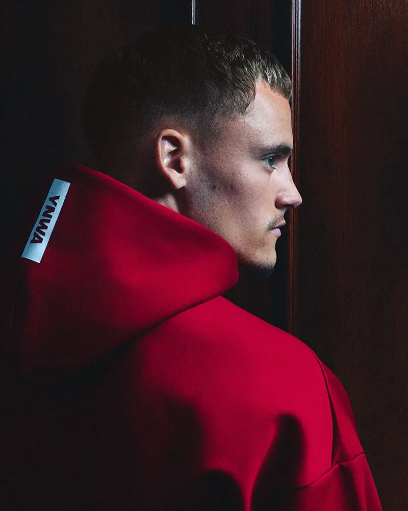 Chaqueta Anthem Z.N.E., de tejido doble suave, con capucha amplia y el mensaje “YNWA” (You’ll Never Walk Alone) bordado como homenaje al himno del club.