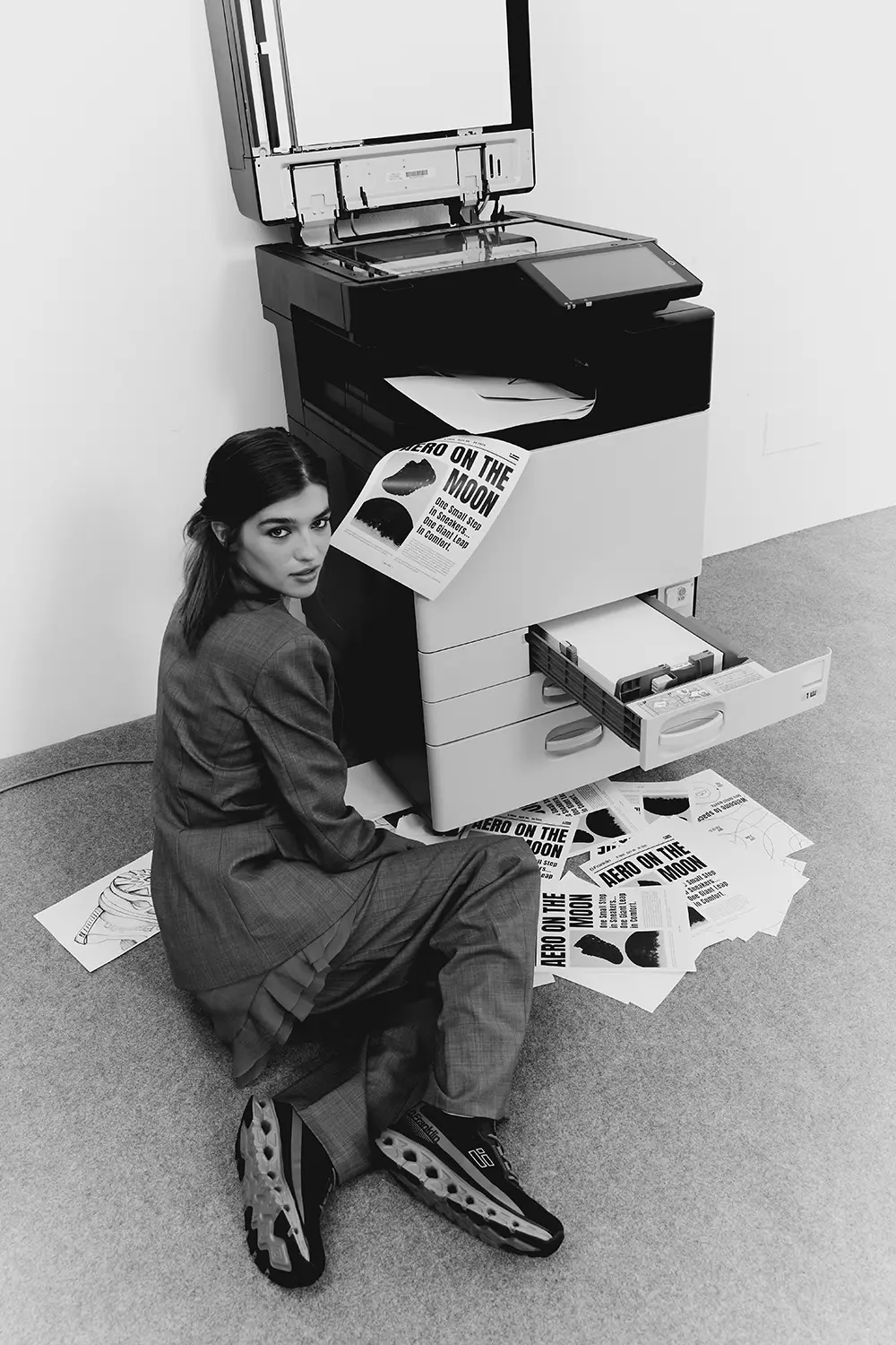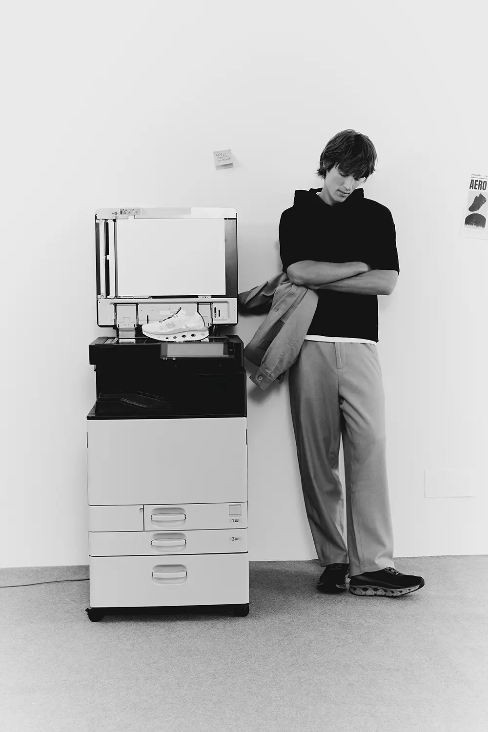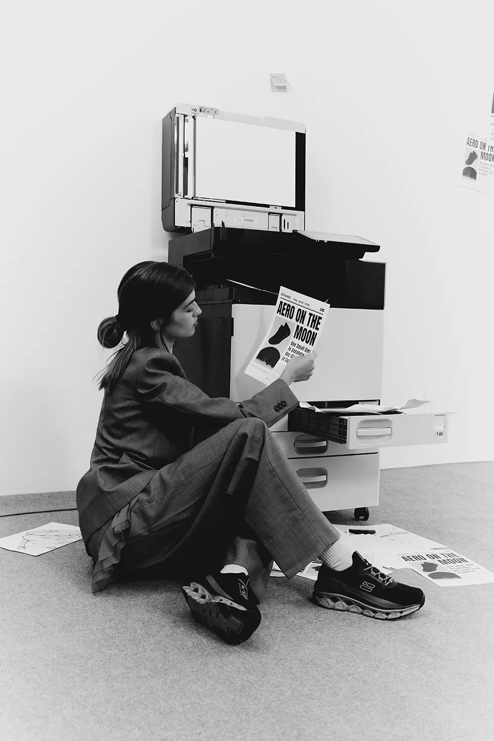 Todo esto te lo cuenta D.Franklin con una gran apuesta visual: una editorial fotográfica en blanco y negro que capura la esencia de la vida en oficina.