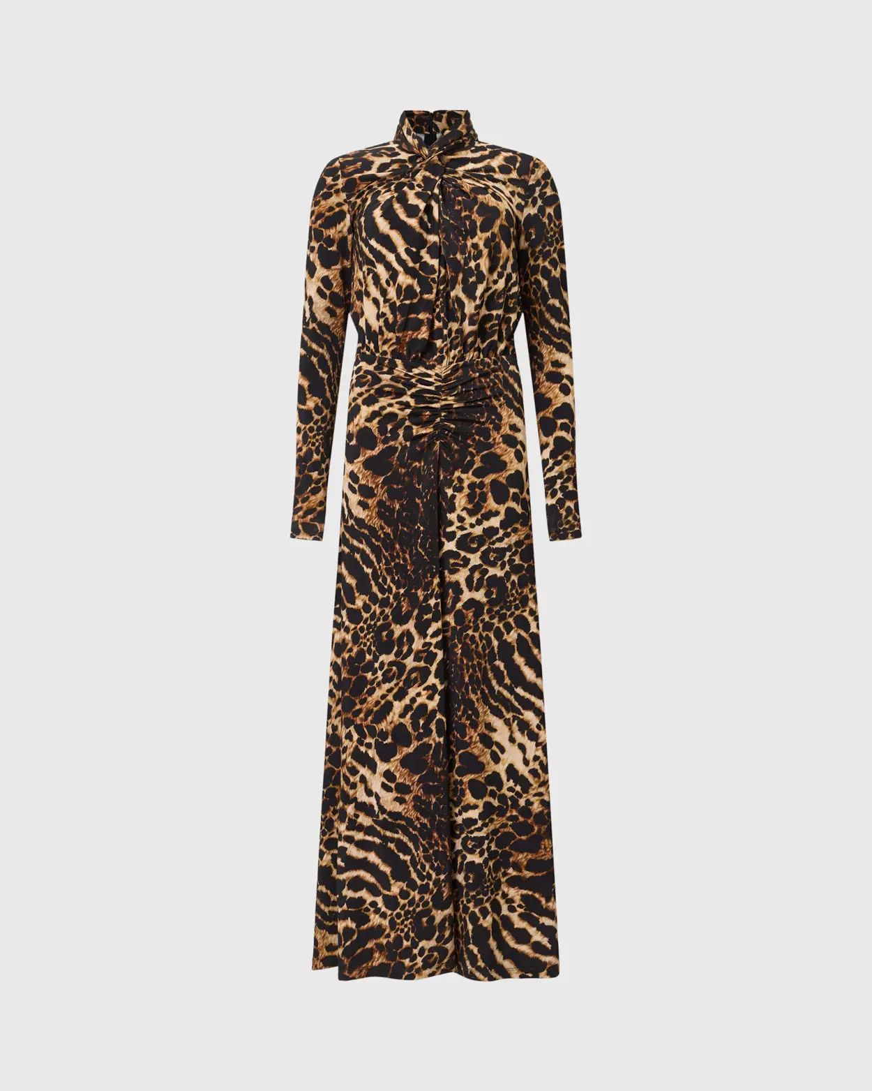 A ellos se suman estilosas prendas de punto envolventes, sus piezas de cuero, insignia de la firma y vestidos estampados con aire romántico, pero sin perder ese carácter rebelde que define a la marca.