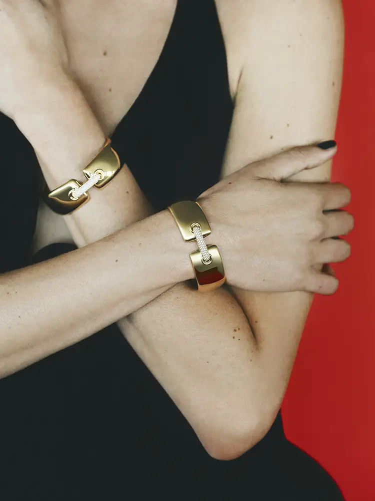 De ahí nacen piezas con un marcado carácter escultórico, que reinterpretan el clásico trenzado del corsé a través de elementos fijos y móviles que se entrelazan con sofisticación. Elaboradas en plata 925 con baños bicolor en oro de 18K o rodio, algunas joyas incorporan un pavé de topacios blancos que intensifica el brillo, el volumen y la textura, aportando aún más fuerza a la colección.