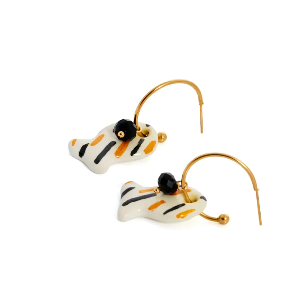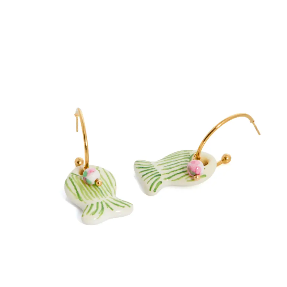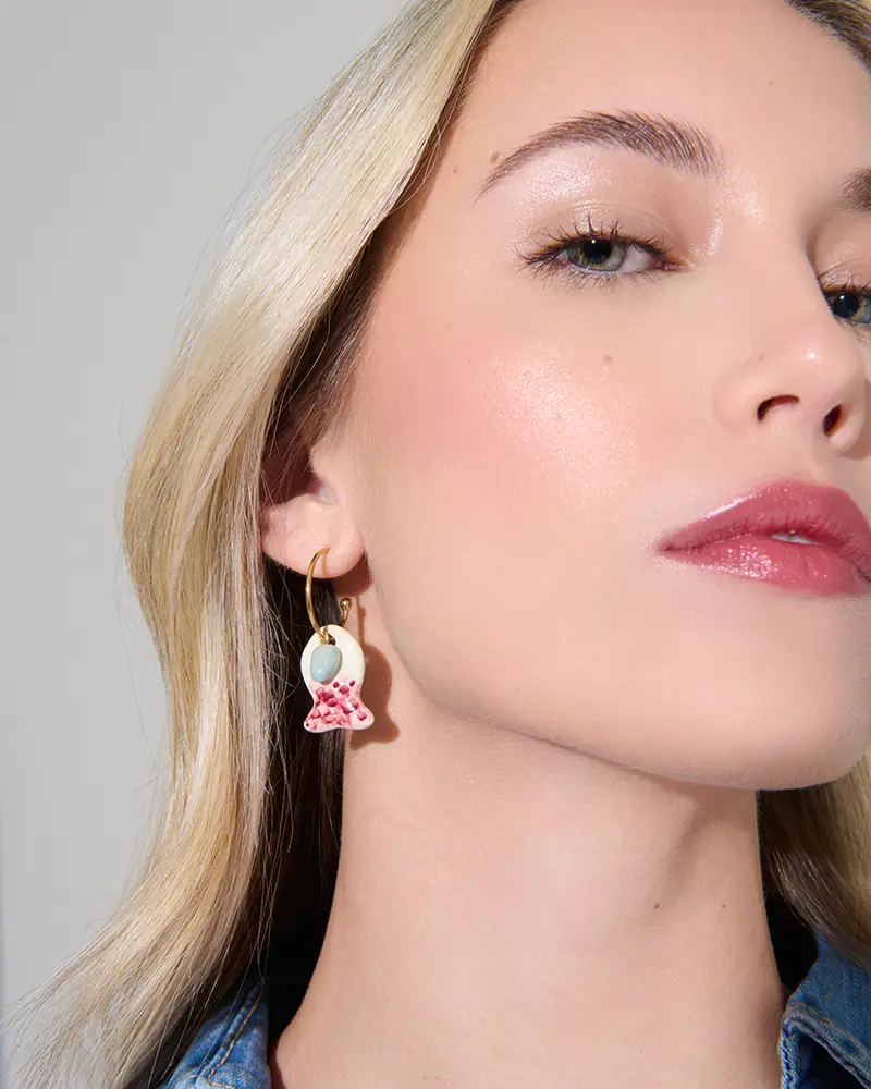 Fabricados y esmaltados de manera completamente artesanal en su taller de Cebolla (Toledo), cada pieza nace del proceso manual y minucioso que caracteriza el trabajo de Sonia Roda. Modelados uno a uno, los peces, protagonistas absolutos de la colección cápsula, se convierten en pequeñas esculturas que, una vez transformadas en joyas, evocan el movimiento del agua, la luz del verano y la calma infinita del mar.