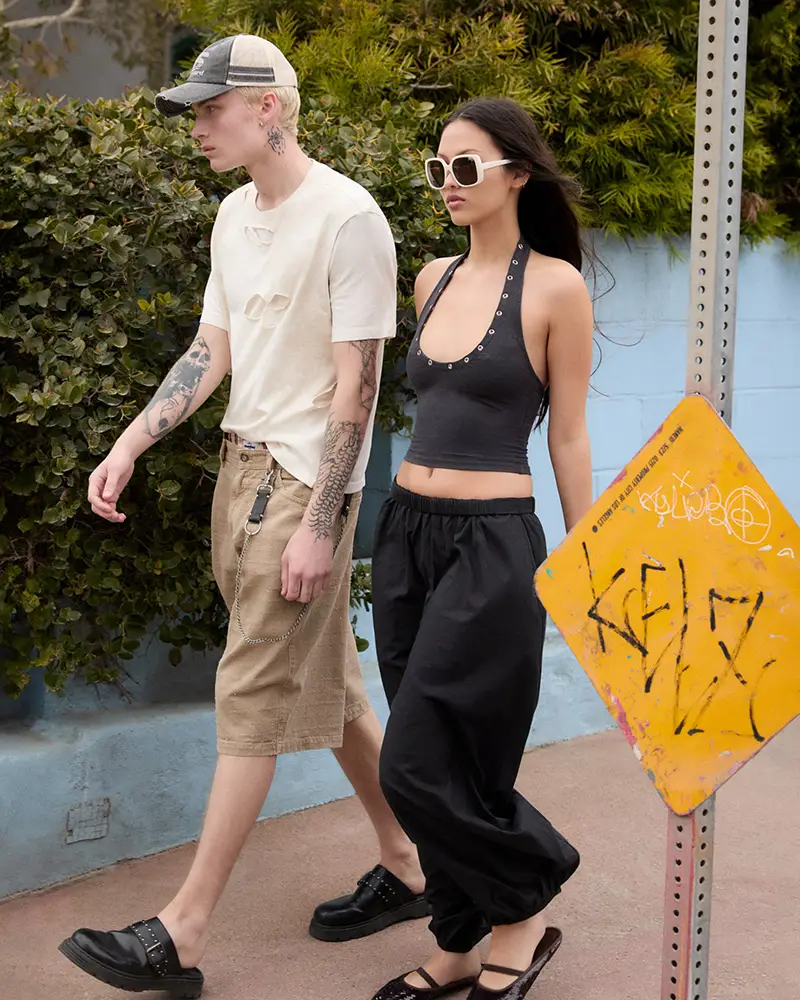 En una historia editorial firmada por Jamie Reid, BERSHKA presenta una serie de imágenes tipo candid que orbitan entre las tendencias más punteras de la temporada y el look indie sleaze de finales de los 2000´s, en la que los protagonistas son cap turados por el objetivo del director creativo como si fueran iconos anónimos en Venice Beach o en algún campus de arte de la West Coast.