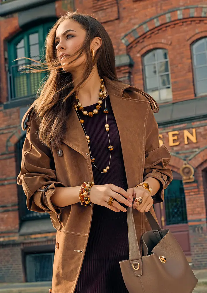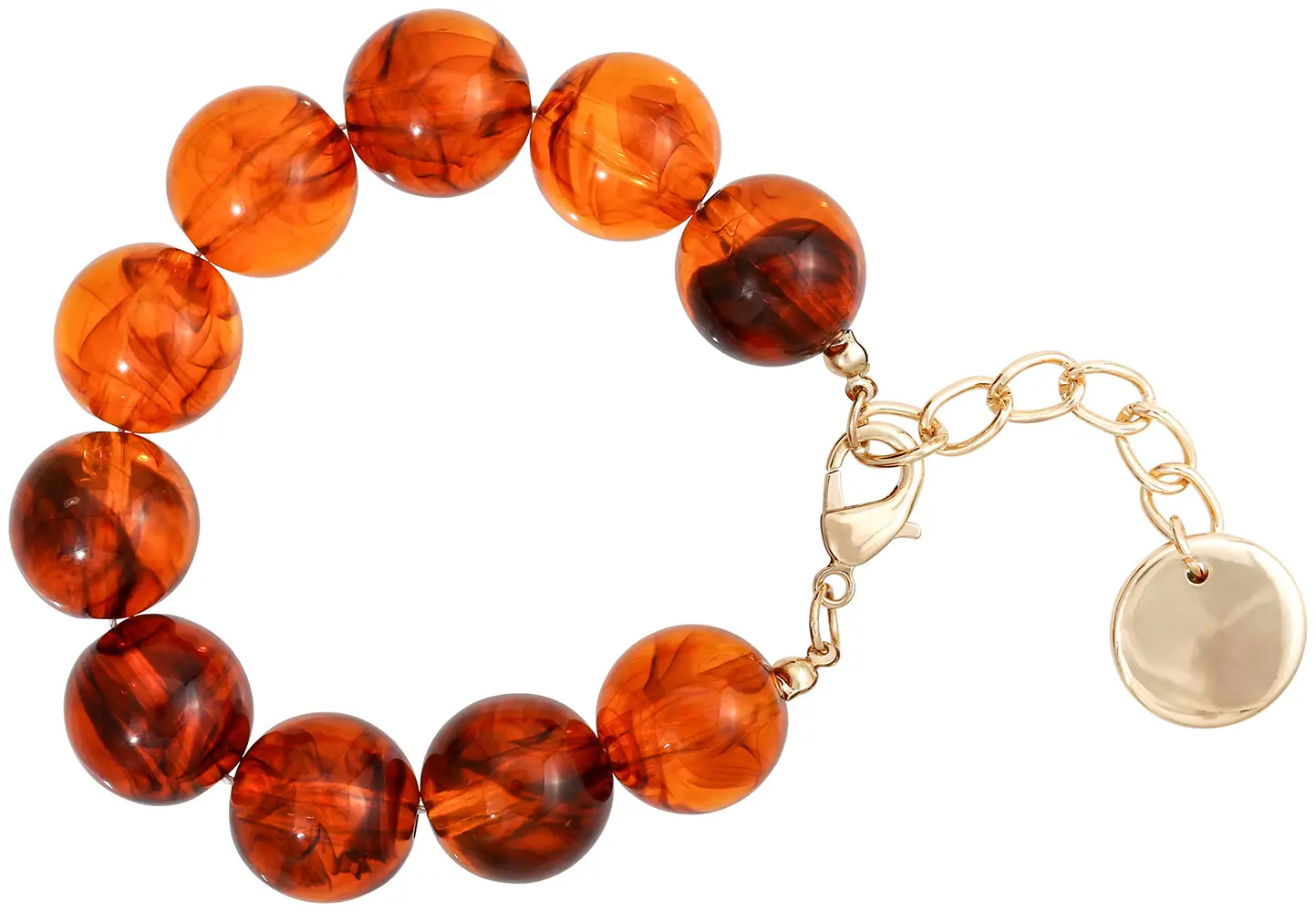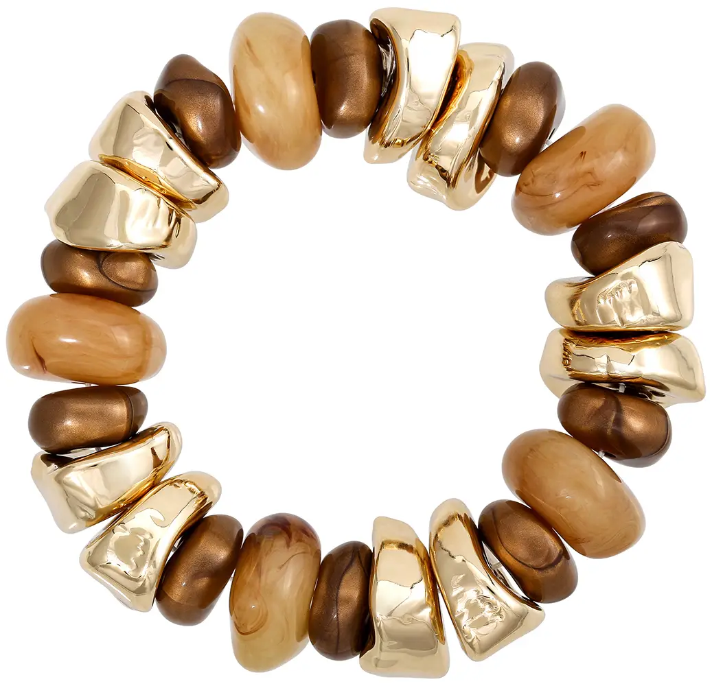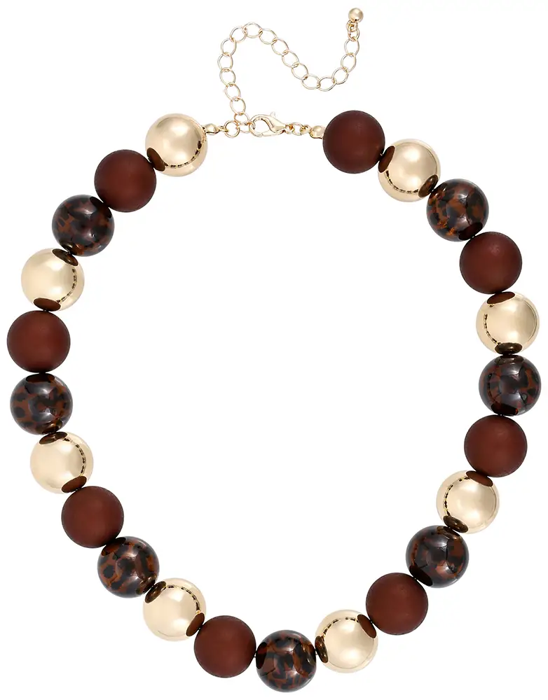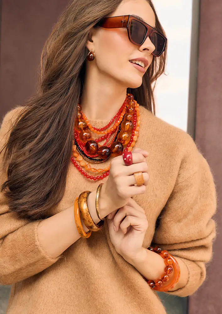 Las cadenas de bolas grandes y monocromáticas también brillan con los jerséis suaves. Al igual que las pulseras anchas, que aportan un toque de estilo.