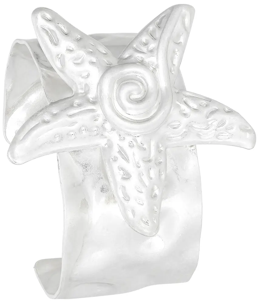 Les gusta ir vestidos de plata antigua. Conchas, tortugas marinas, estrellas de mar y caballitos de mar son las estrellas de la colección, ya sea como pieza llamativa en cadenas o en grupo. Pueden combinarse con bisutería de gran tamaño con efecto martillado que parece esculturas líquidas.