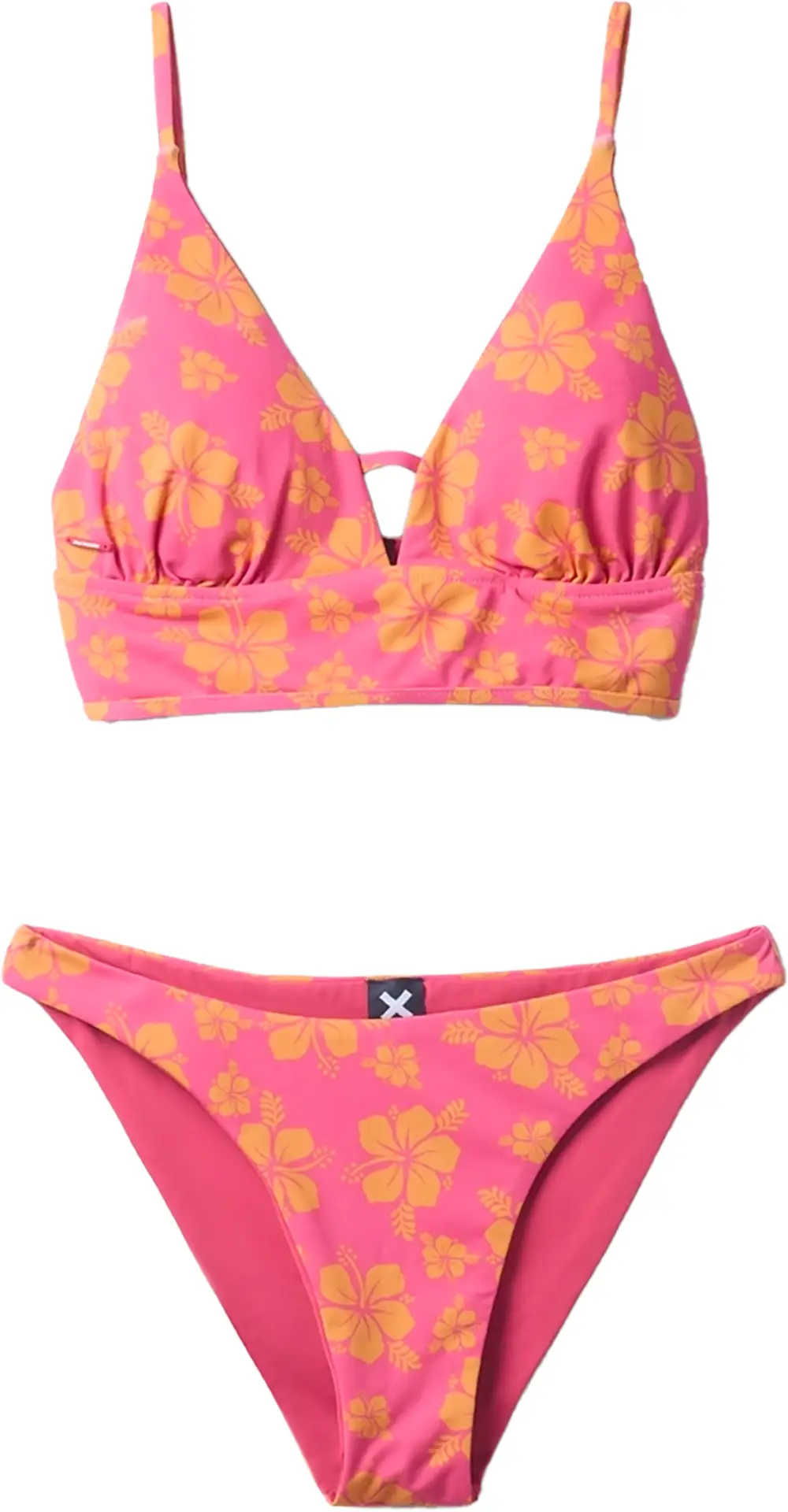 La deportista ha logrado destacar en el mundo del paddle surf tras una exitosa carrera en el surf. Más allá de las competiciones, Alazne es conocida por su compromiso con el medio ambiente y su estilo de vida ligado al mar. Su propuesta de baño está formada por un bikini reversible estampado en tono rosa y naranja con forma de triángulo con banda inferior de sujeción y una parte inferior de corte clásico, y una camiseta de tirantes de algodón orgánico y corte slim fit.