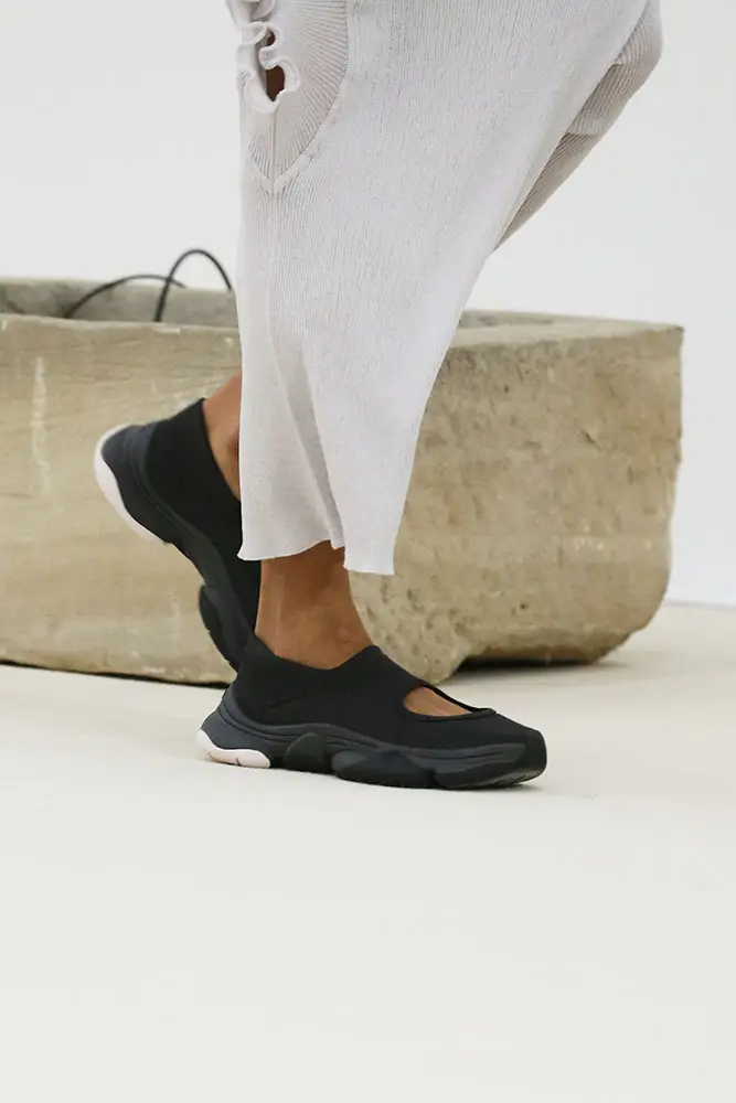 CAMPER × ISSEY MIYAKE presenta Karst Finch, el primer par de zapatillas de esta colaboración, basado en uno de los modelos más distintivos de Camper: Karst. El diseño juega con la idea de montar una parte superior ligera y elástica sobre la característica suela, inspirada en las formaciones geográficas rocosas que dan nombre al zapato.