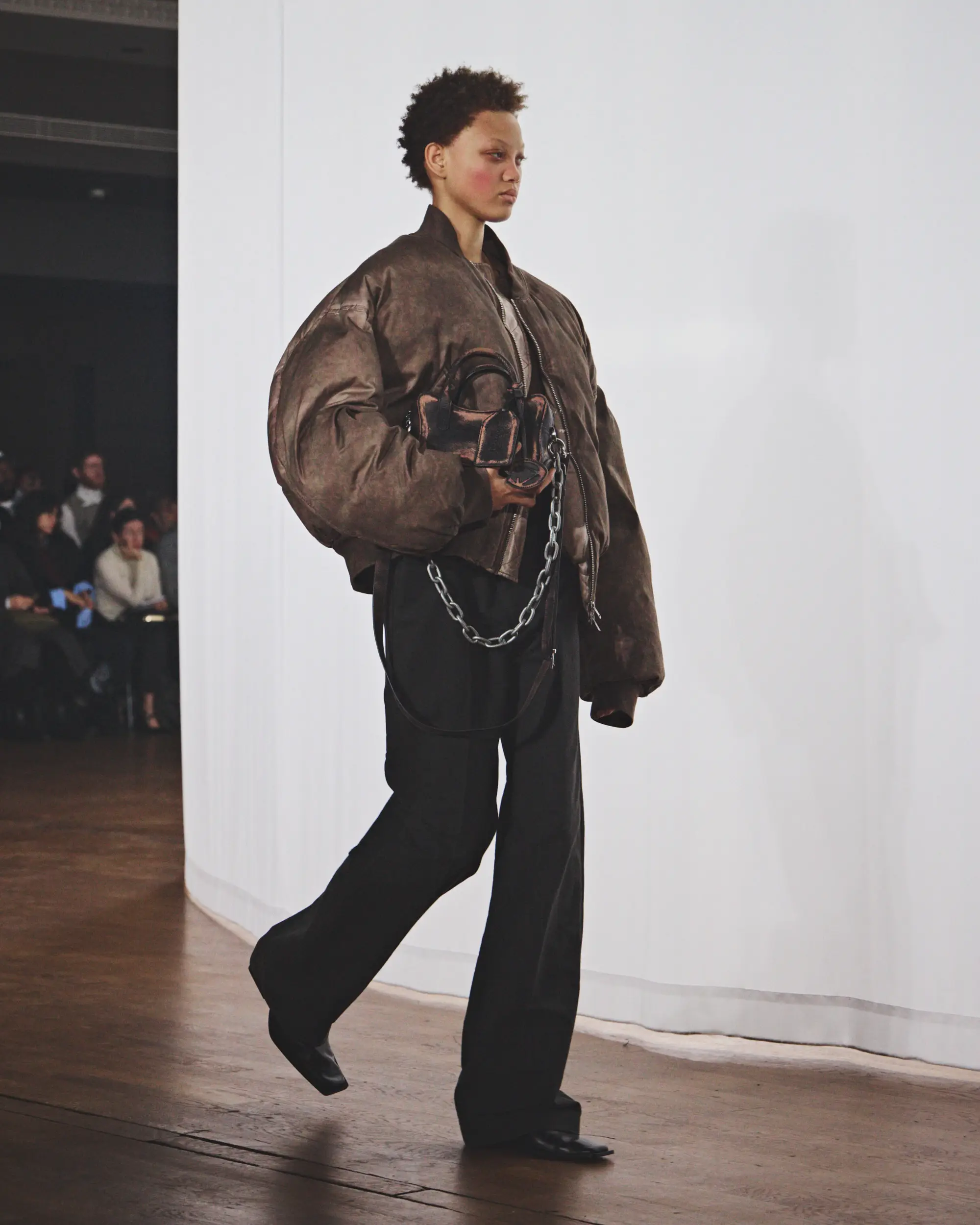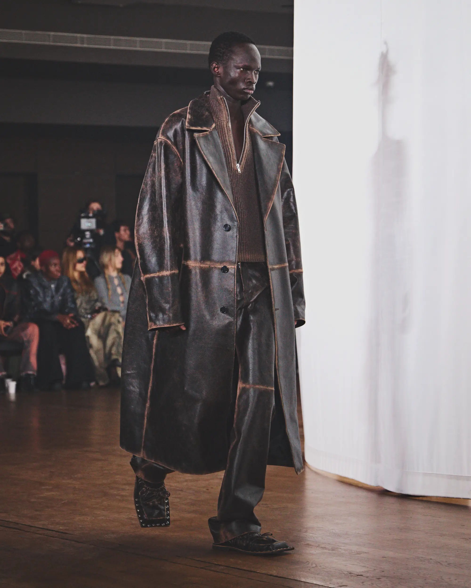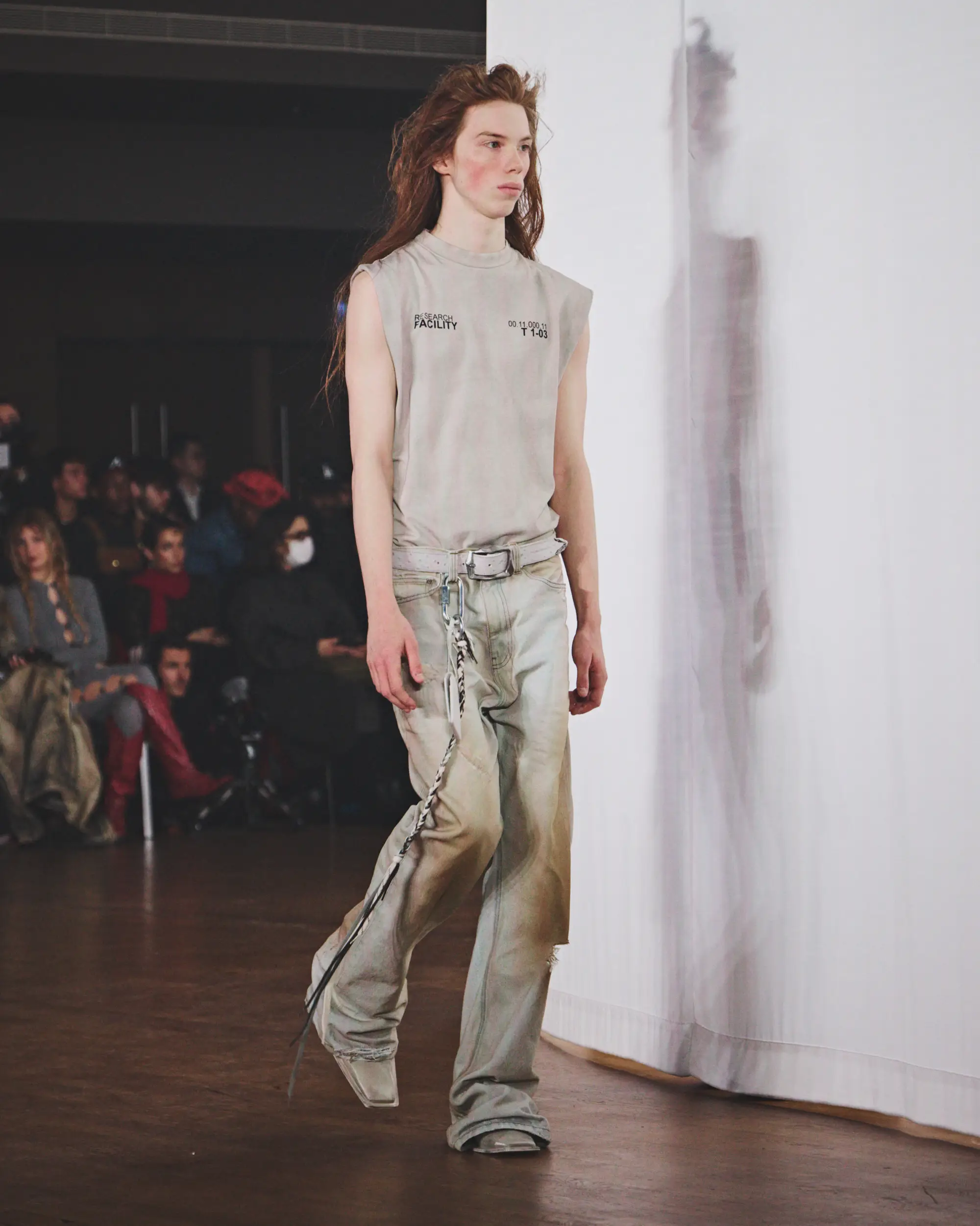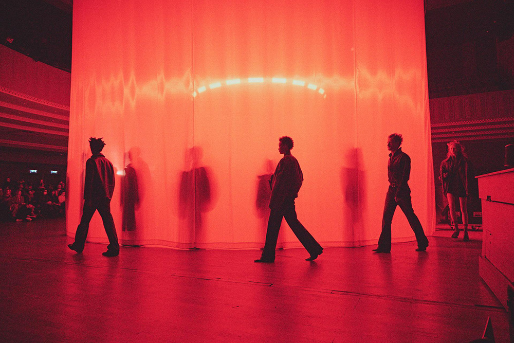 El desolado viaje se ve reforzado por un paisaje sonoro original compuesto por Pandora’s Jukebox, que intensifica la sensación de frío y aislamiento. El desfile concluye con una cruda y sobrecogedora actuación en directo de Annahstasia (Enuke), cuya voz oscura e hipnótica acompaña la salida de los personajes del escenario.