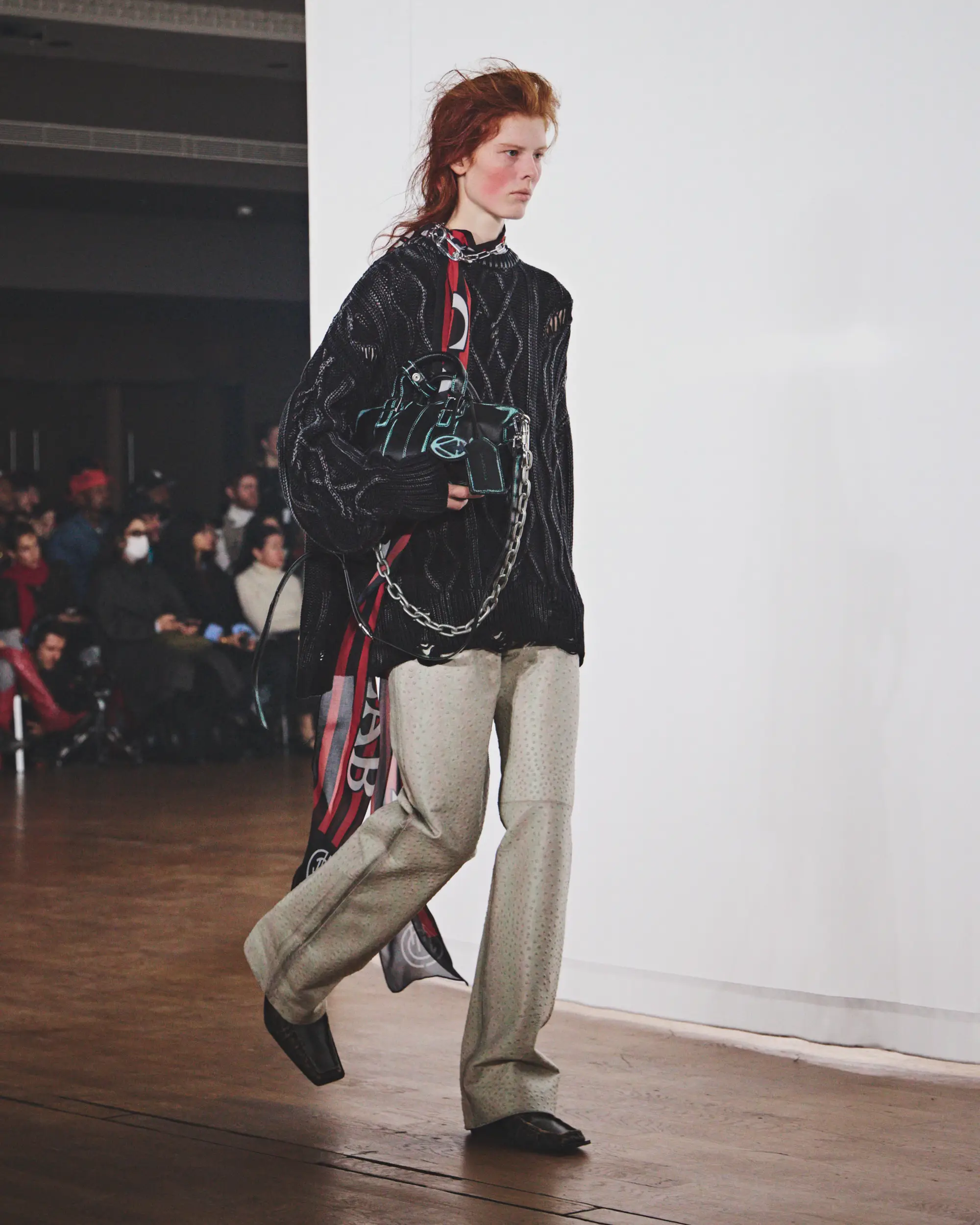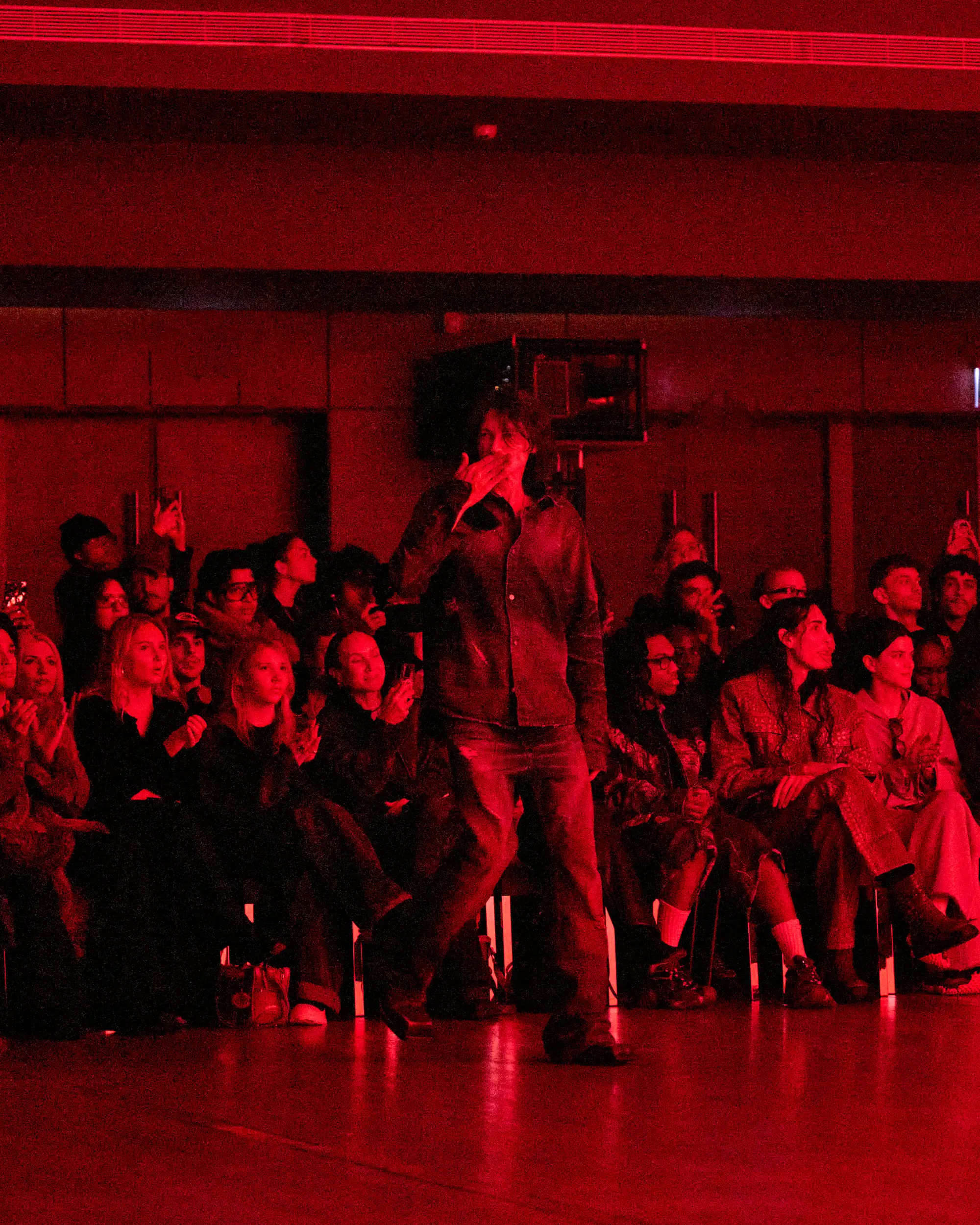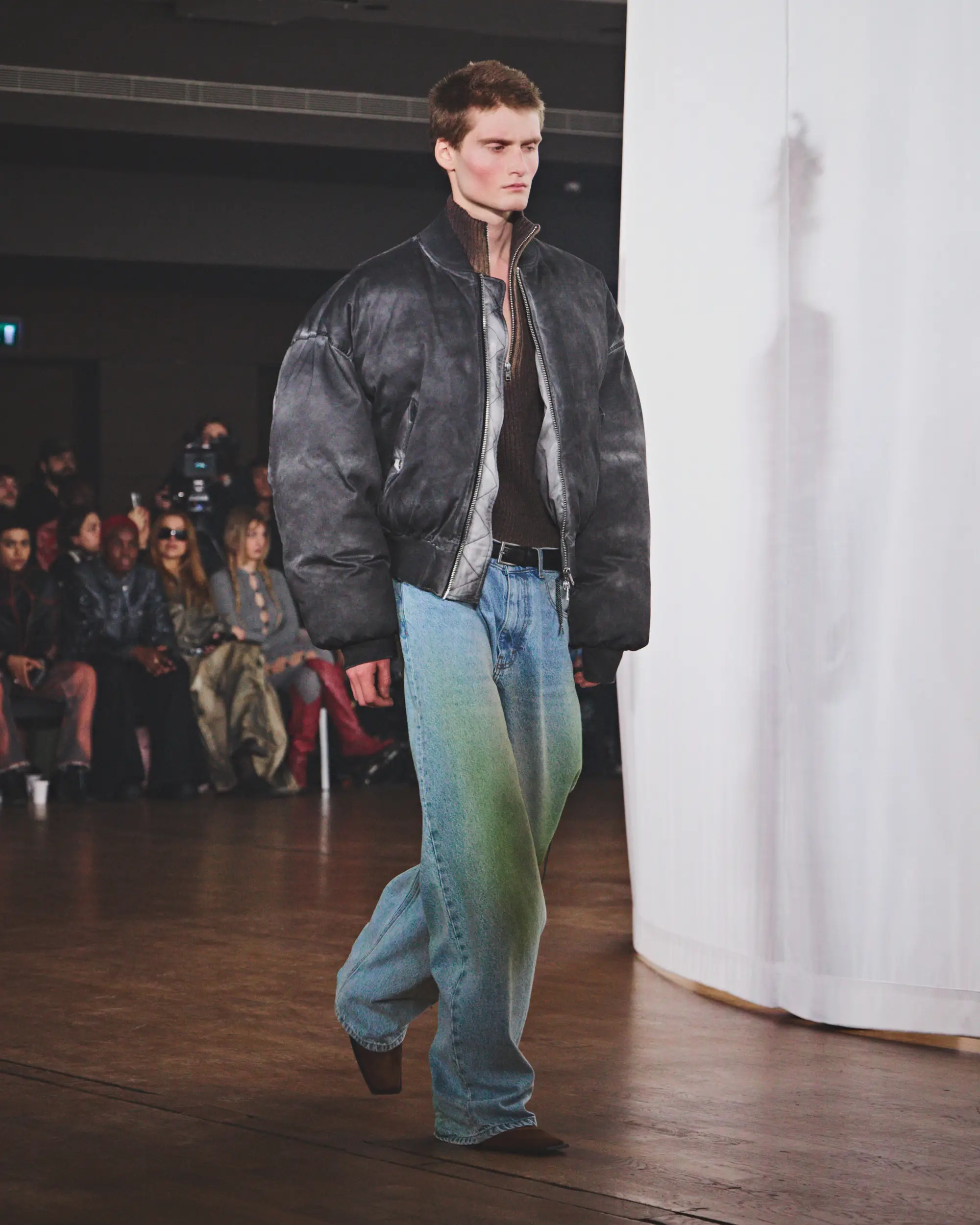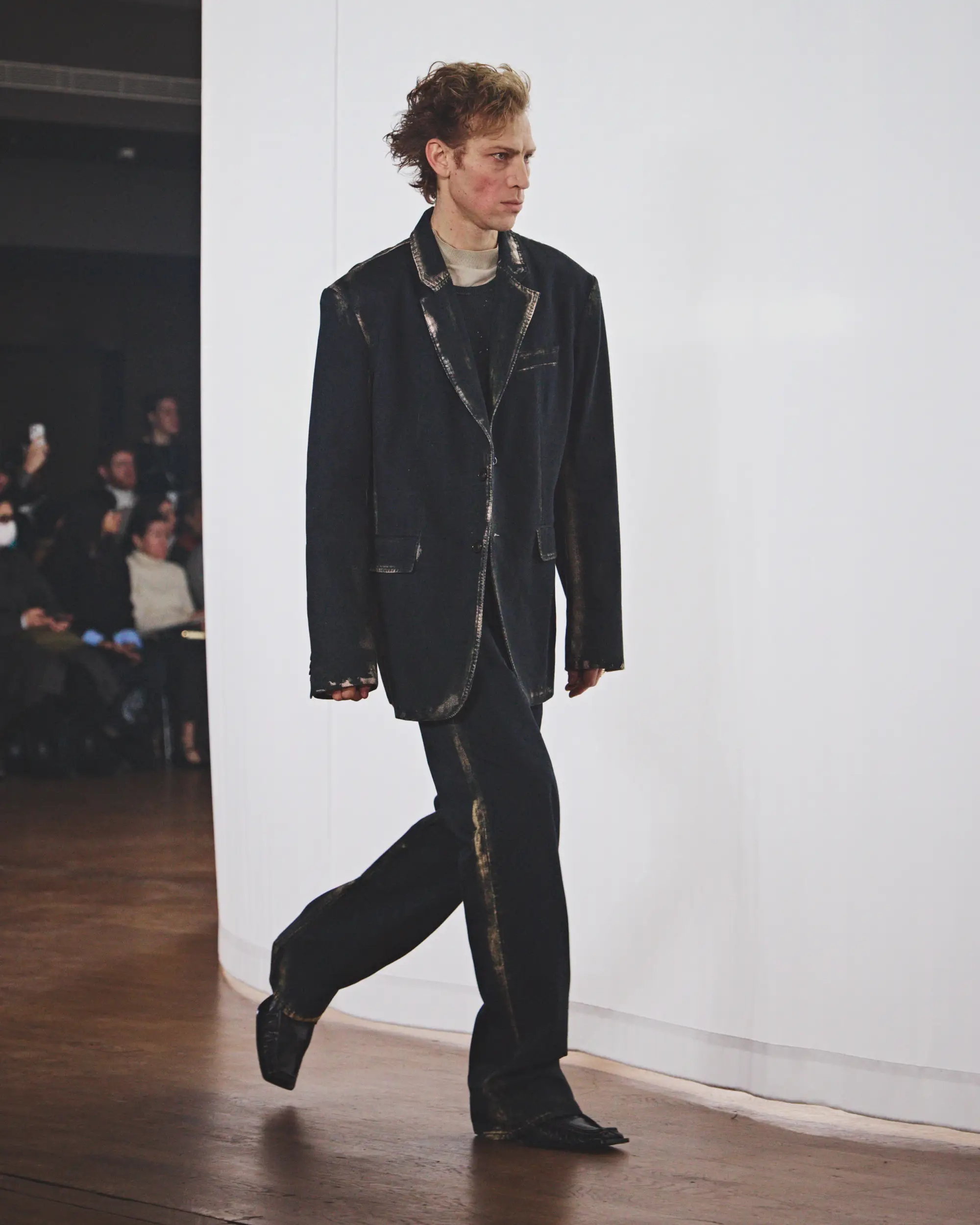 El desolado viaje se ve reforzado por un paisaje sonoro original compuesto por Pandora’s Jukebox, que intensifica la sensación de frío y aislamiento. El desfile concluye con una cruda y sobrecogedora actuación en directo de Annahstasia (Enuke), cuya voz oscura e hipnótica acompaña la salida de los personajes del escenario.