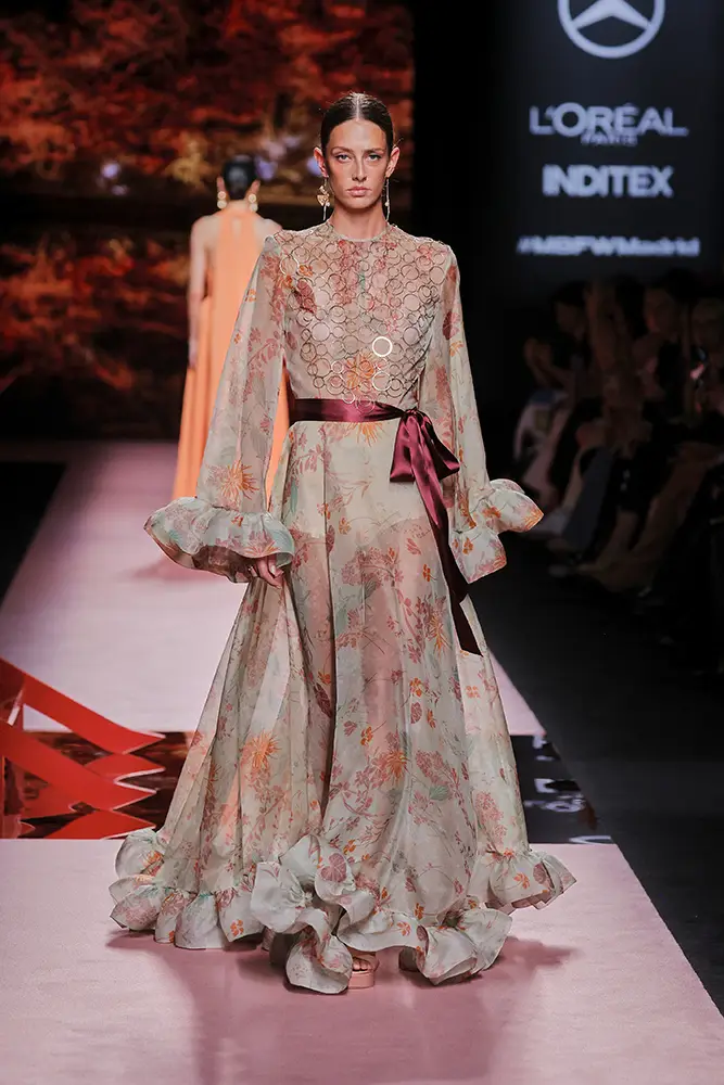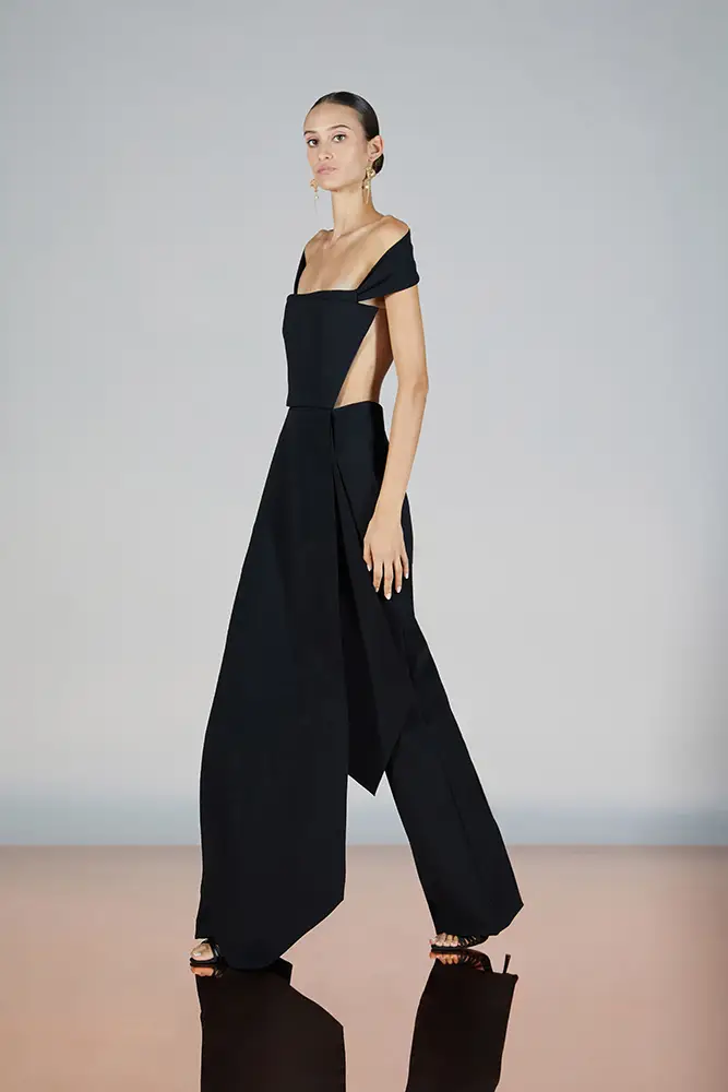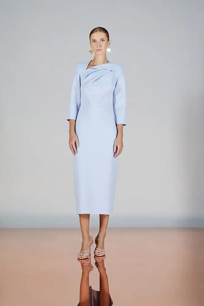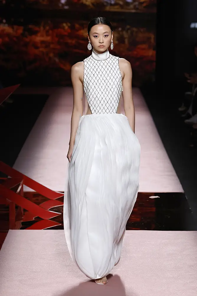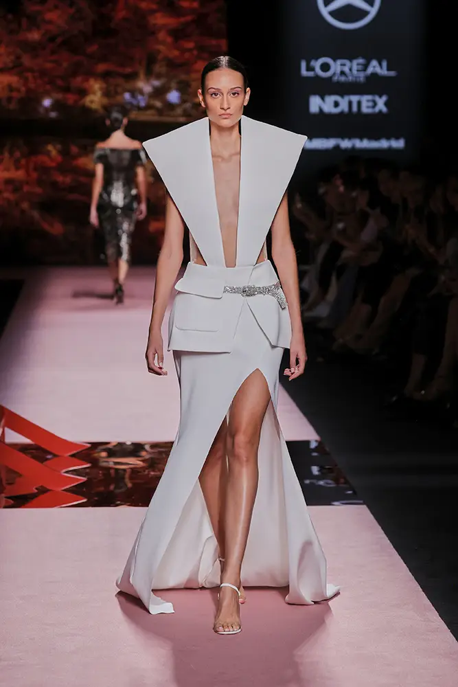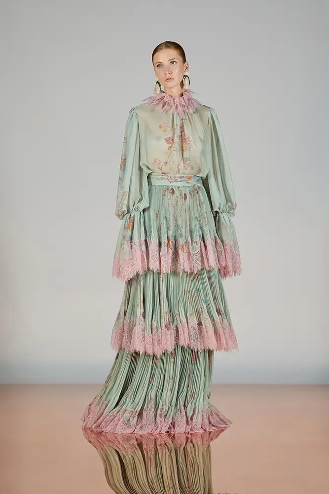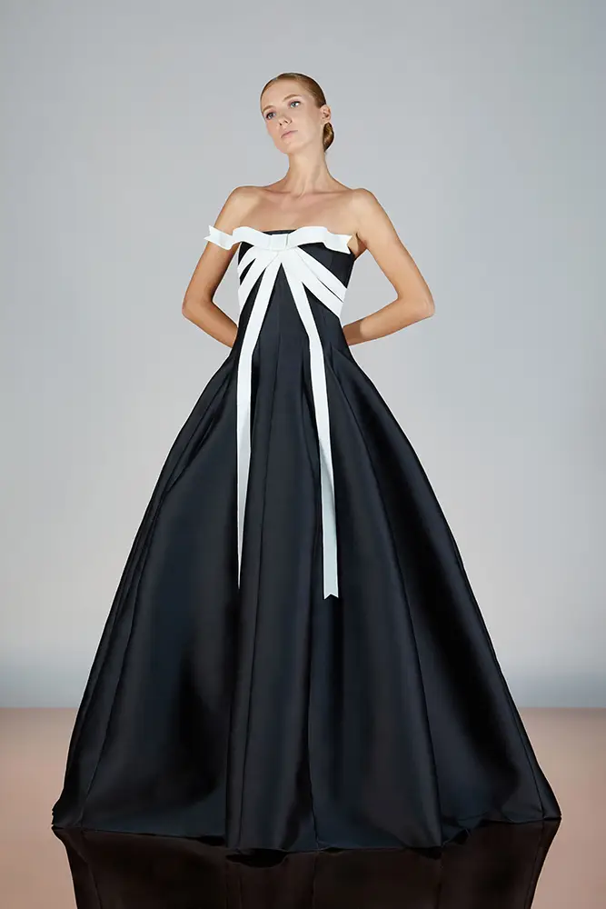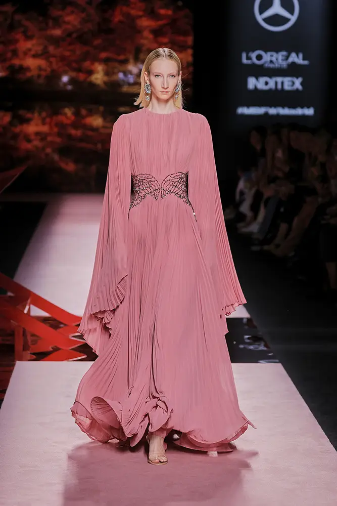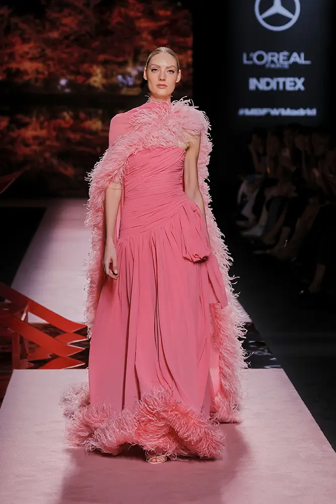 Las capas de gasa, los drapeados precisos y los detalles escultóricos aportanmovimiento y carácter sin perder funcionalidad.