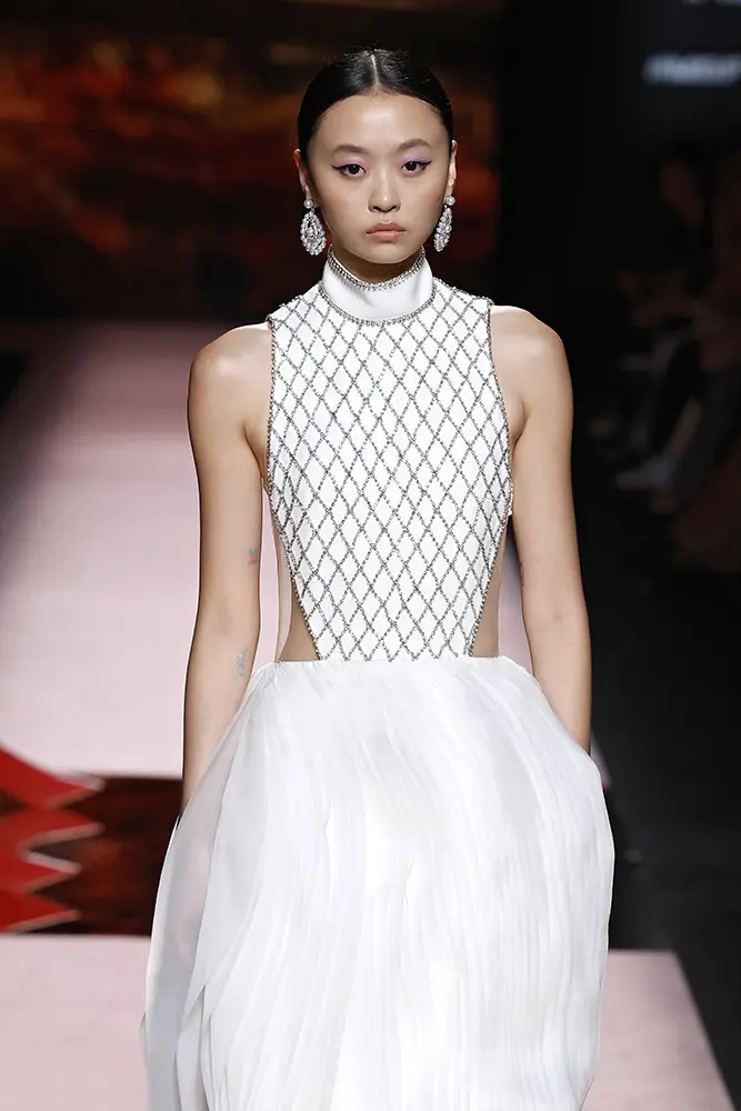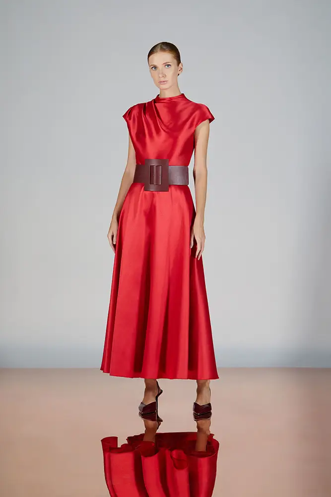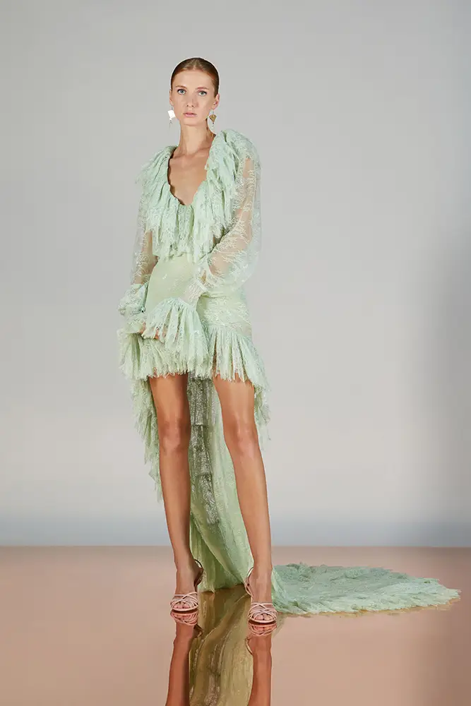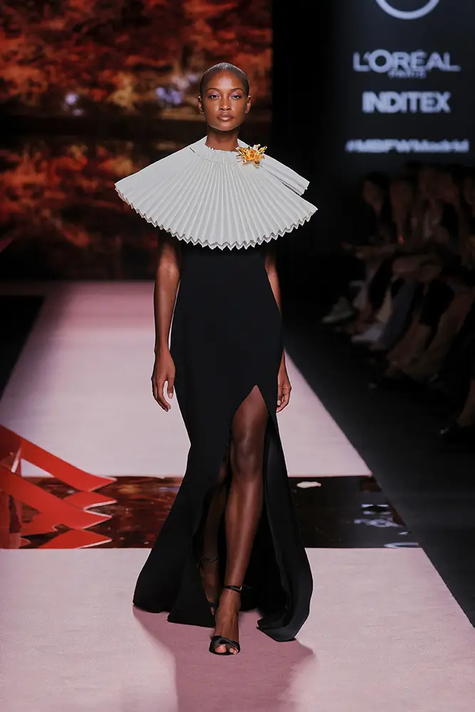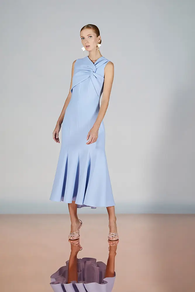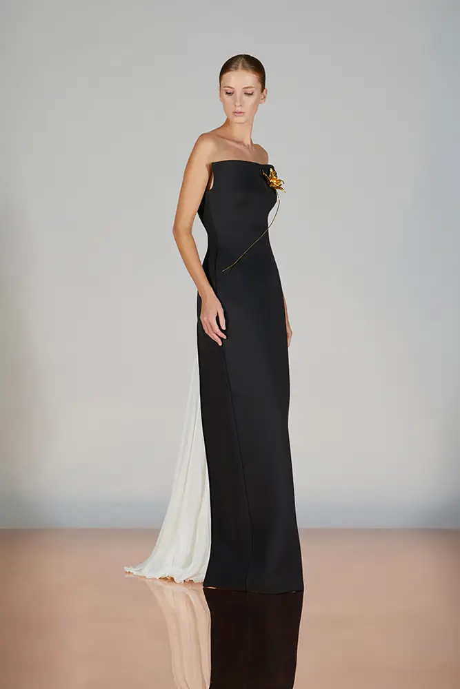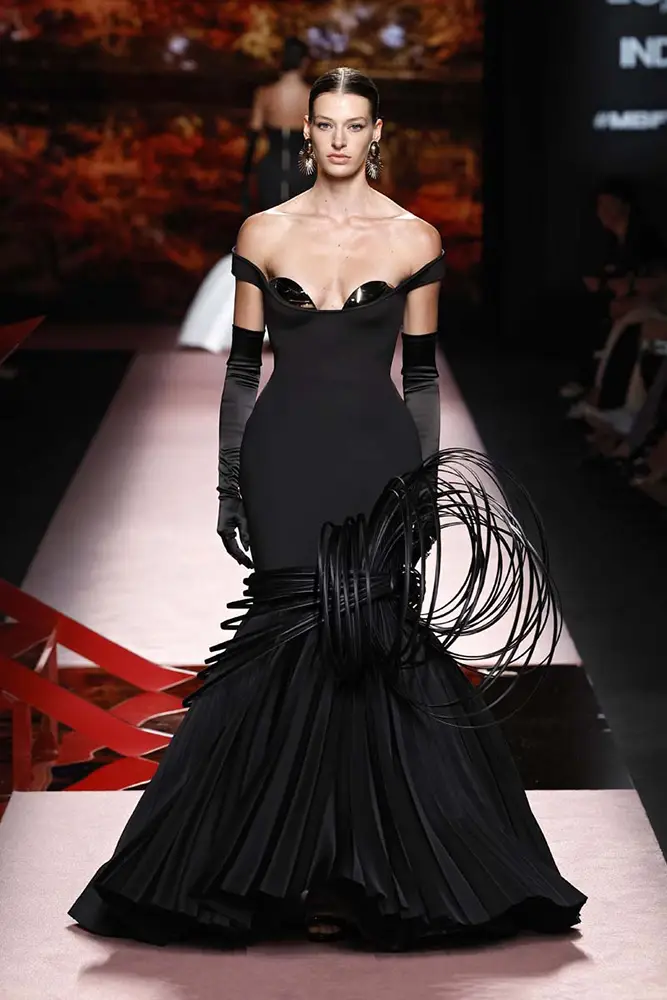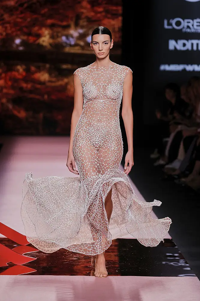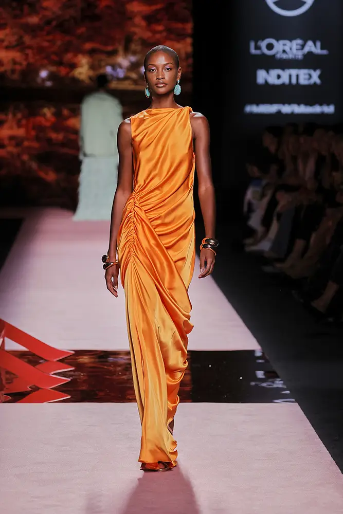 Las capas de gasa, los drapeados precisos y los detalles escultóricos aportanmovimiento y carácter sin perder funcionalidad.