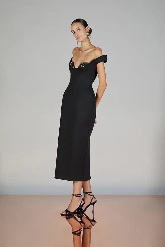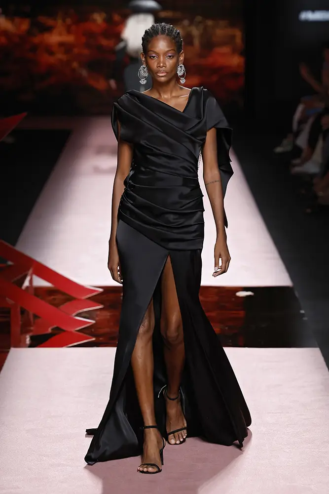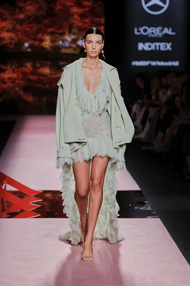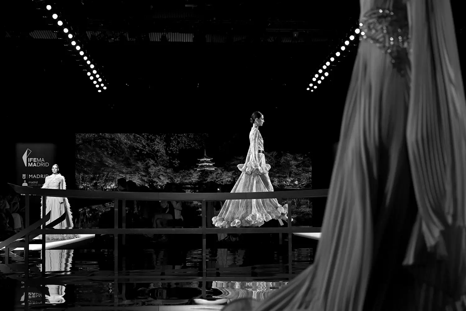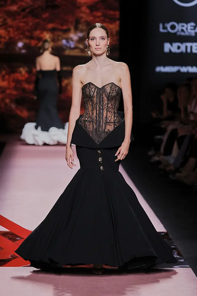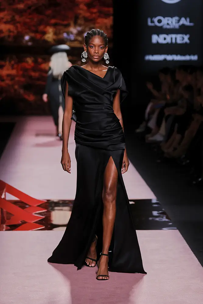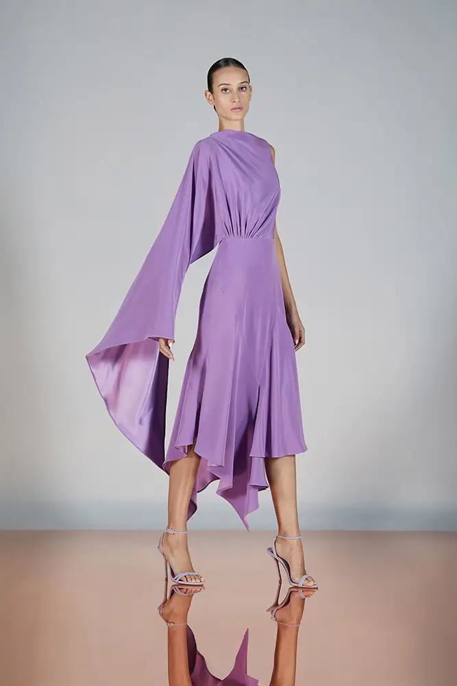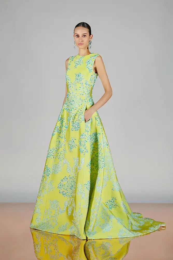 Las capas de gasa, los drapeados precisos y los detalles escultóricos aportanmovimiento y carácter sin perder funcionalidad.
