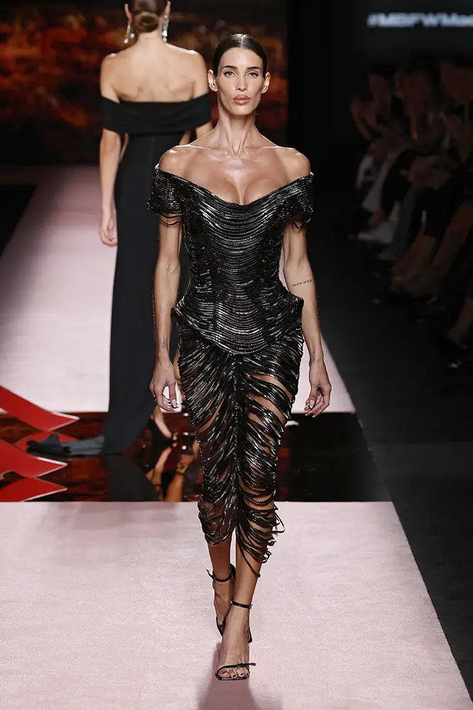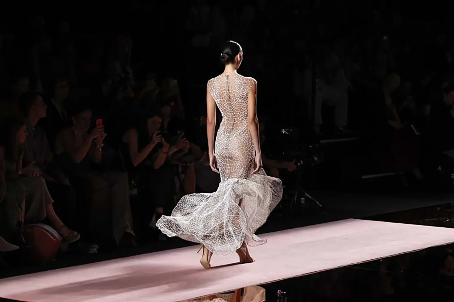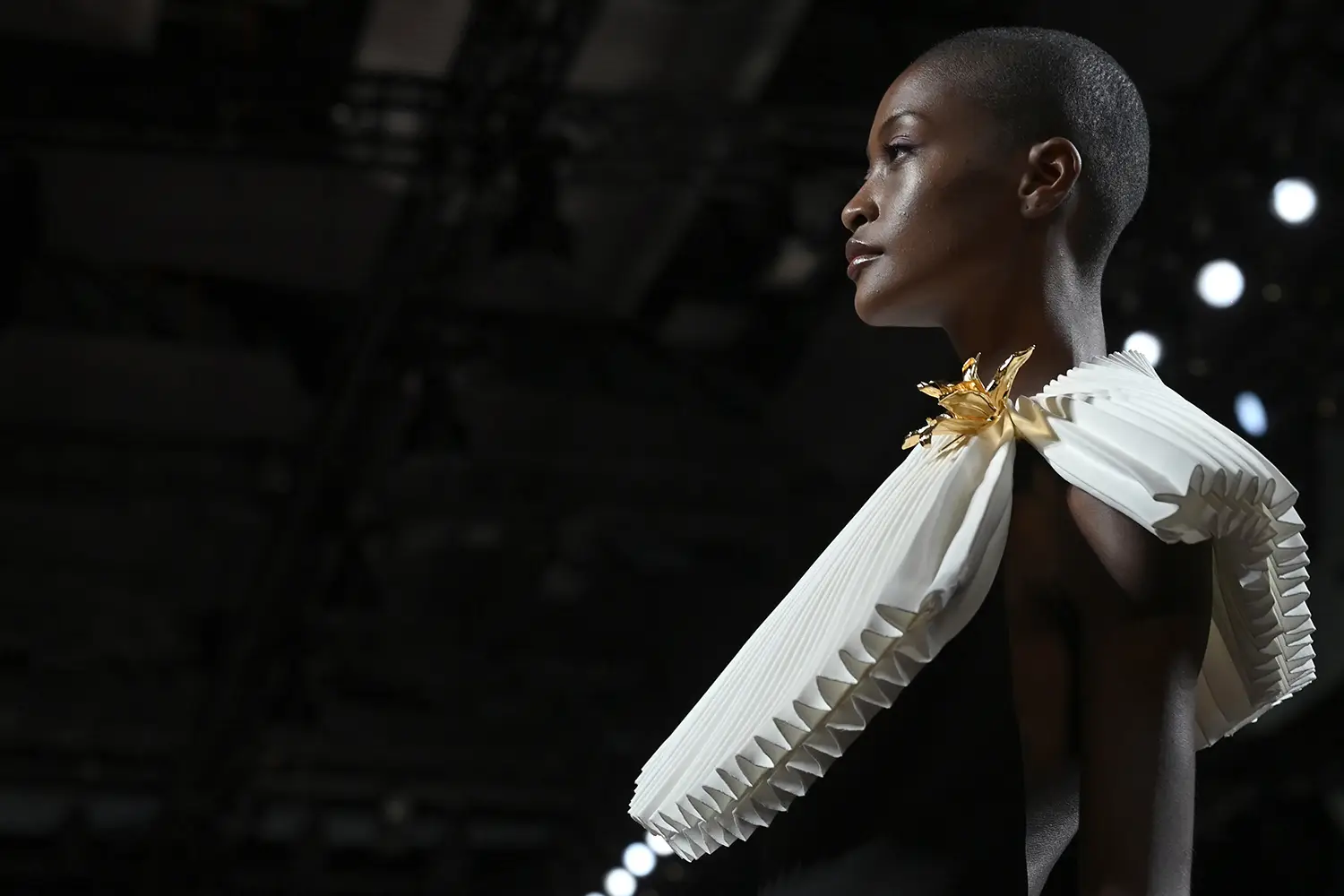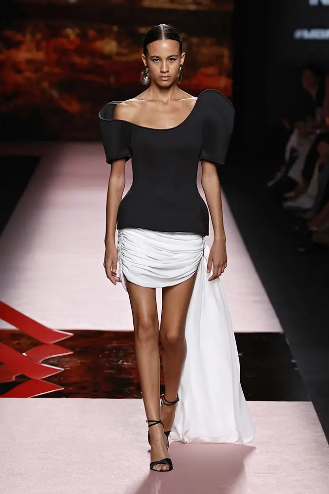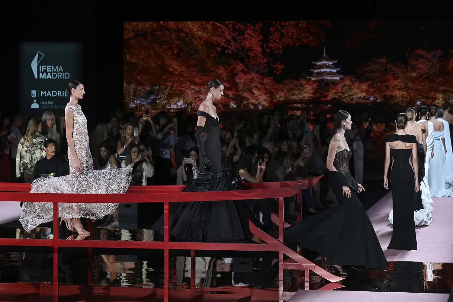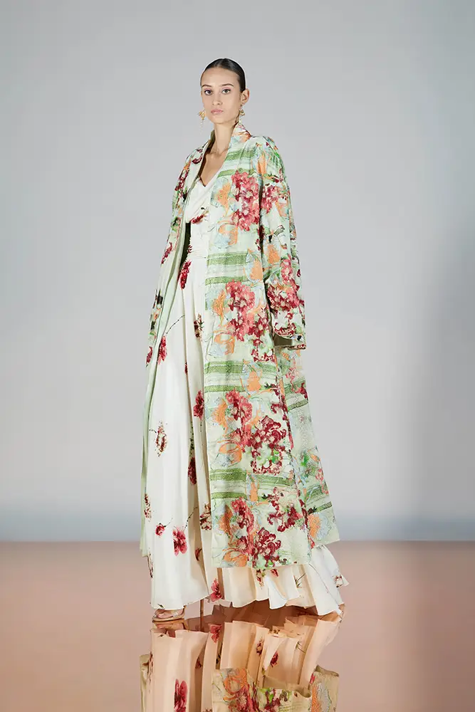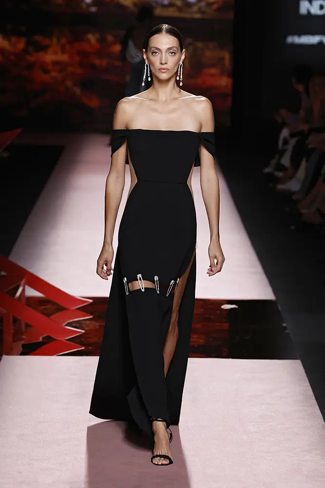 Las capas de gasa, los drapeados precisos y los detalles escultóricos aportanmovimiento y carácter sin perder funcionalidad.