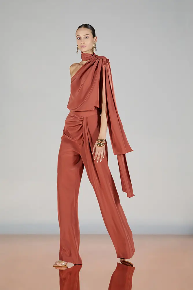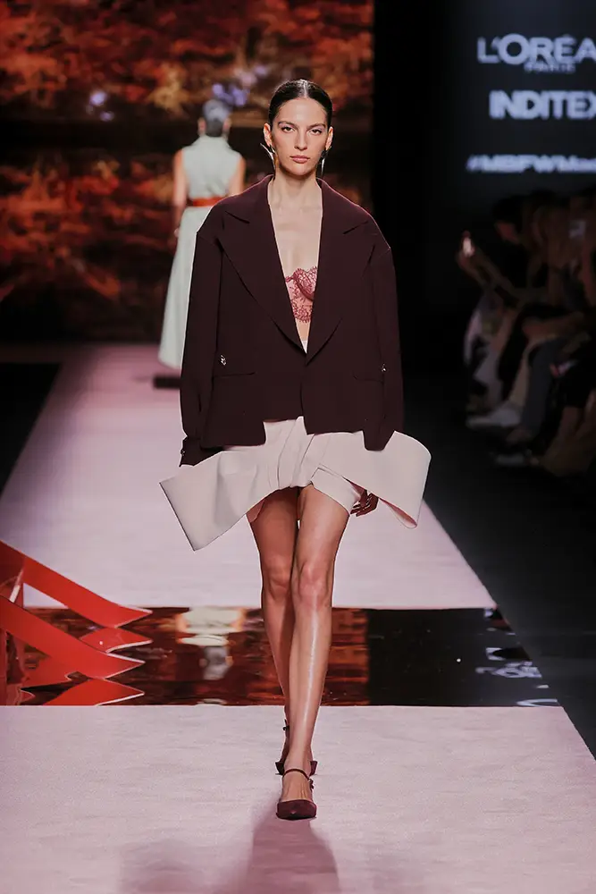 Minivestidos y tops combinados con pantalones de sastre o faldas cortas incorporanun aire joven y dinámico, mientras que los monos o trajes en colores terracota, burdeos o negros se consolidan como una opción versátil para estilismos casual-chic.