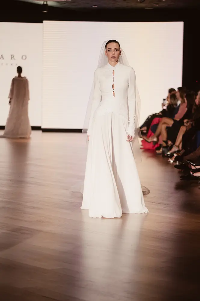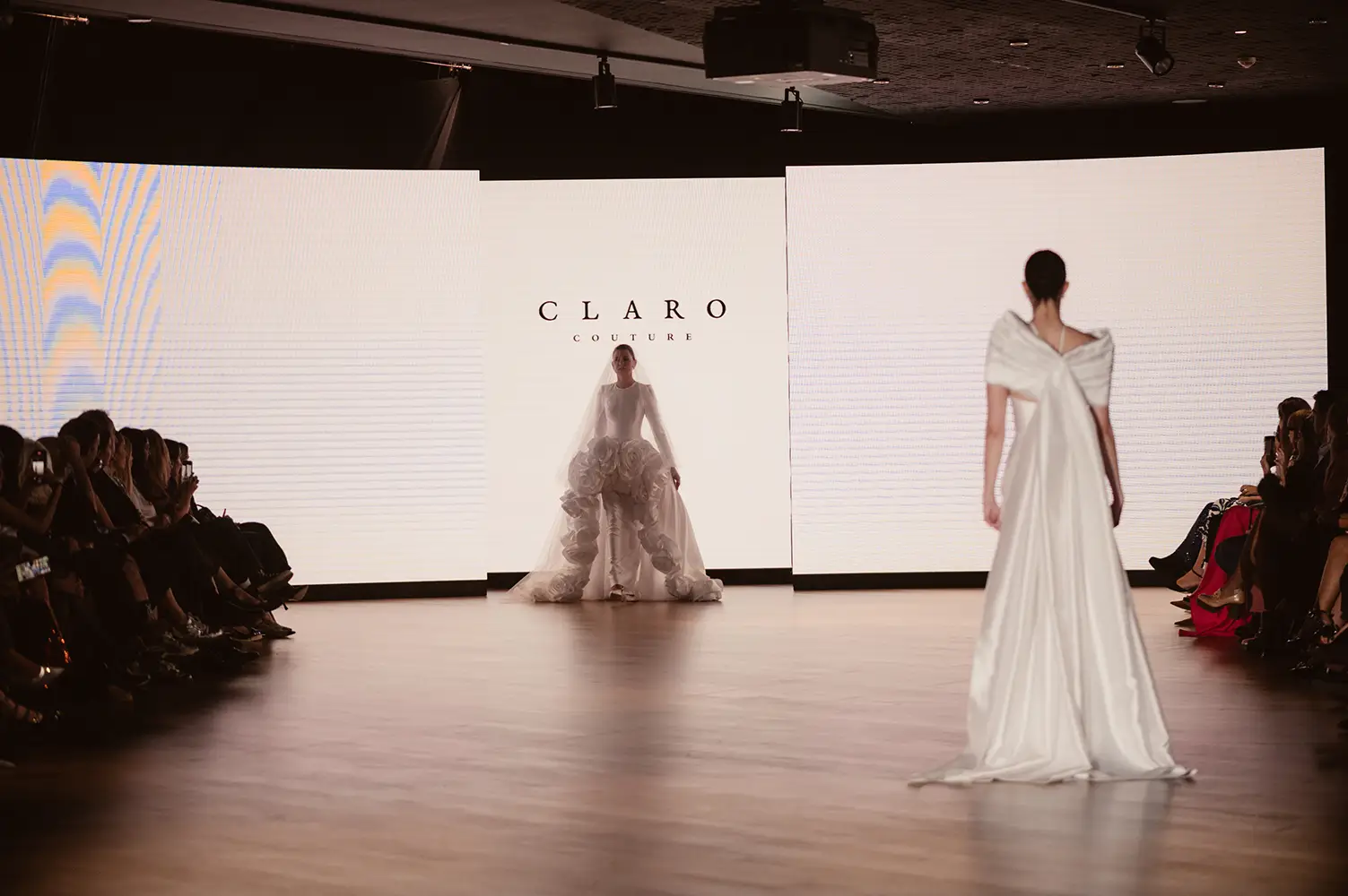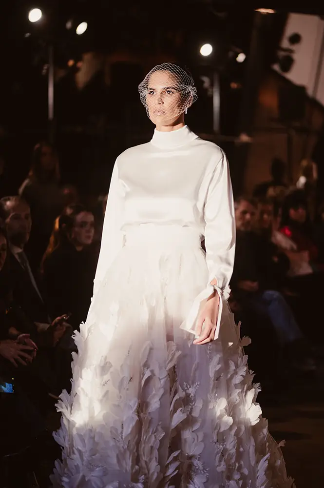 El Museo Balenciaga se ha teñido de blanco para acoger esta colección de Bridal CLARO que respira una belleza silenciosa pero indiscutible, elegante y atemporal, destinada a vestir a las novias de una nueva generación con el sello inconfundible de la costura a medida.
