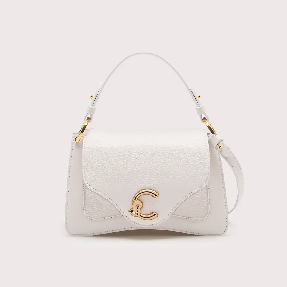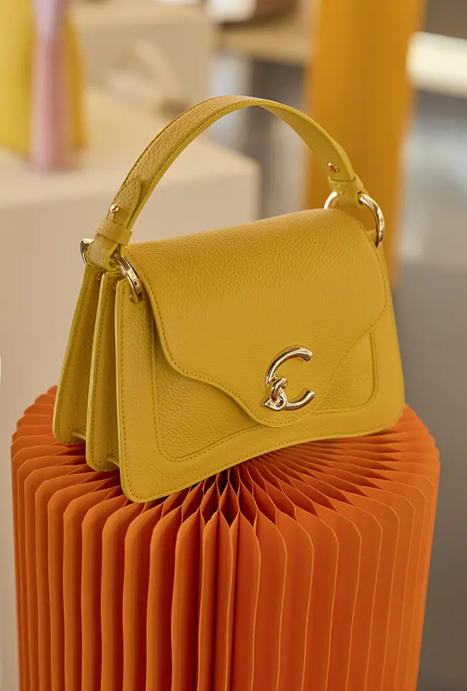Entre los protagonistas de la colección, destaca el nuevo Coccinelle C–ME Bag: más que un bolso, un manifiesto de identidad y estilo. Con líneas geométricas y detalles sofisticados, su diseño evoca la armonía entre tradición y vanguardia. La emblemática “C” de Coccinelle, inspirada en el histórico plectro de la firma, se transforma en símbolo de vínculos emocionales y de libertad expresiva.