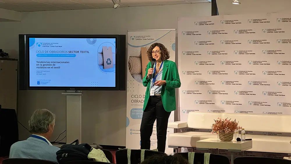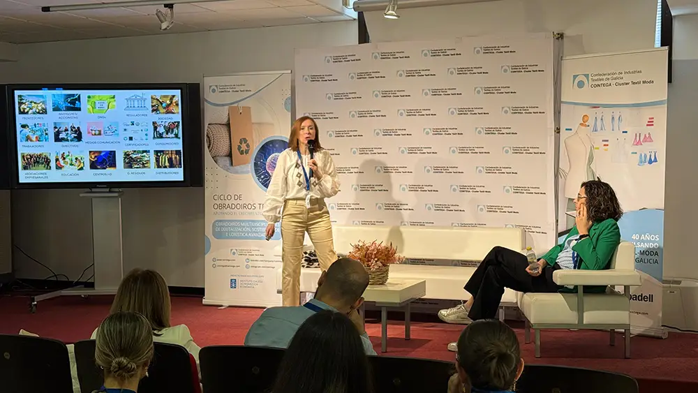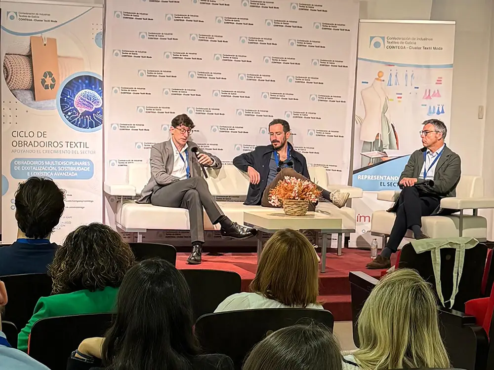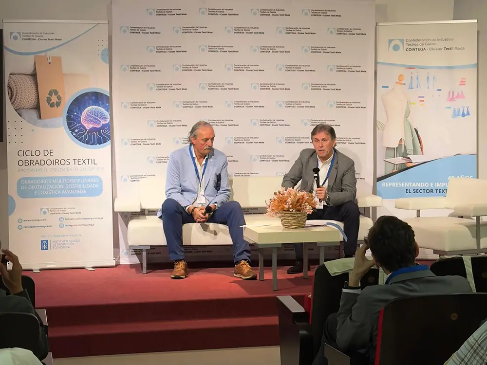 Durante la bienvenida y cierre institucional, miembros de la directiva de Cointega estuvieron acompañados por Norberto Penedo, Director del área de competitividad del Igape, que destacó la importancia de conocer los retos del sector para proporcionar apoyos desde el Igape, y con Mª José Echevarría Moreno, Directora Xeral de Calidade Ambiental e Sostibilidade de la Conselleria de Medio Ambiente e Cambio Climático – Xunta de Galicia, que destacó su compromiso para cumplir con la Estrategia europea para la circularidad de los productos textiles, que marca 2030 como objetivo para una comercialización de prendas más duraderas, reutilizables, reciclables y con fibras recicladas y libres de sustancias peligrosas.