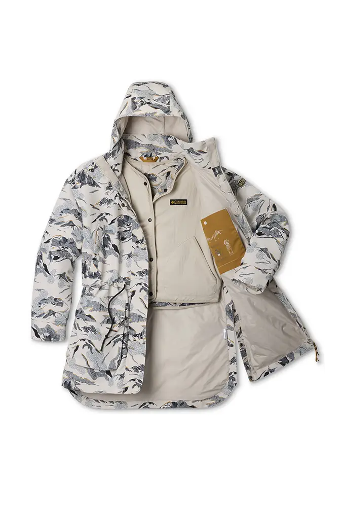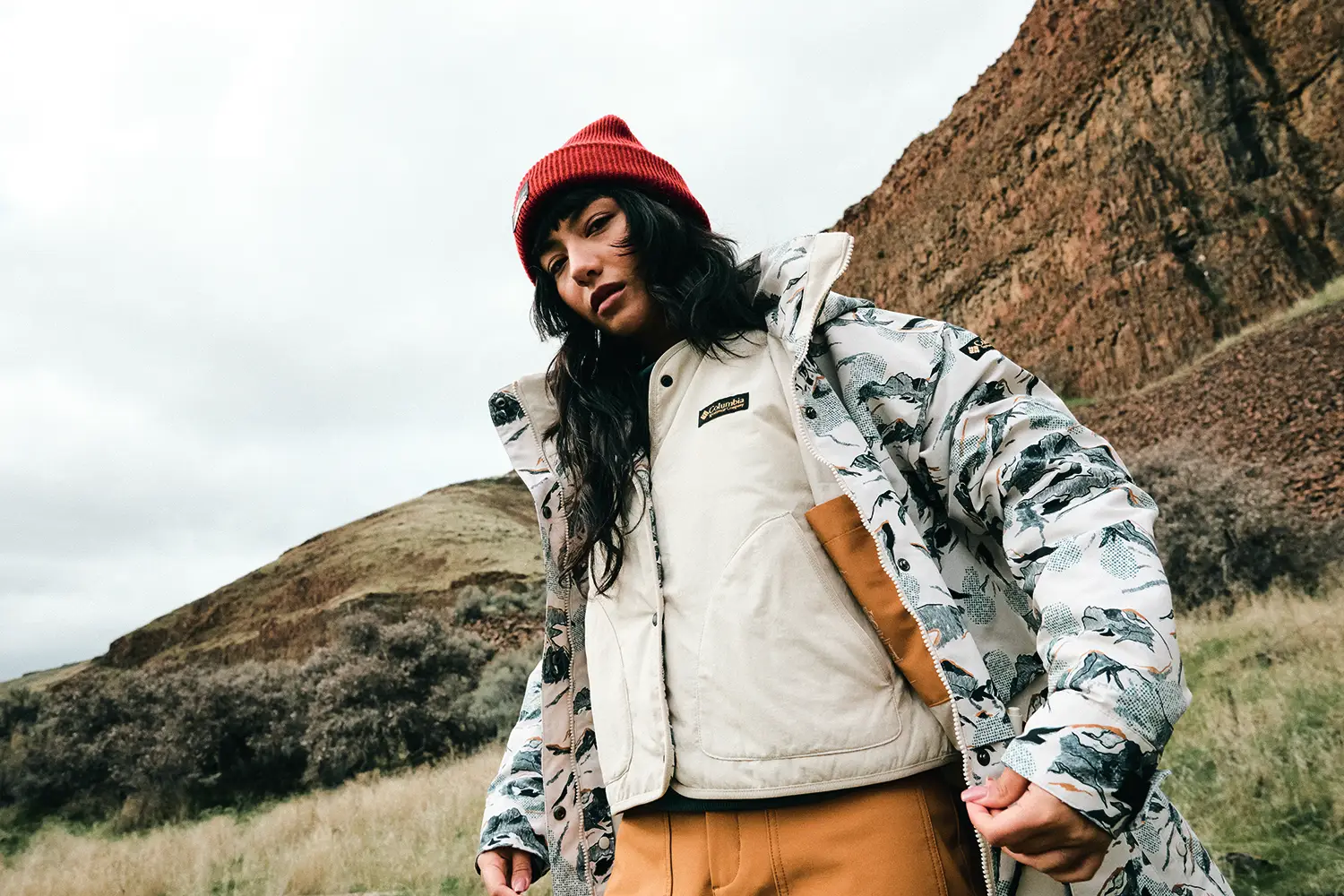 Esta colección canaliza el espíritu de la exploración al aire libre de los años 70, revisitando los primeros catálogos e innovaciones de Columbia. La atmósfera está enraizada en la nostalgia de campamentos, caza y pesca, reinterpretada para los exploradores de hoy en día. Siluetas de archivo como la chaqueta 3 en 1 High Cascades se reinterpretan con materiales y funcionalidades modernas, mientras que los estampados y gráficos rinden homenaje a mapas topográficos y señalética de los senderos de la región.