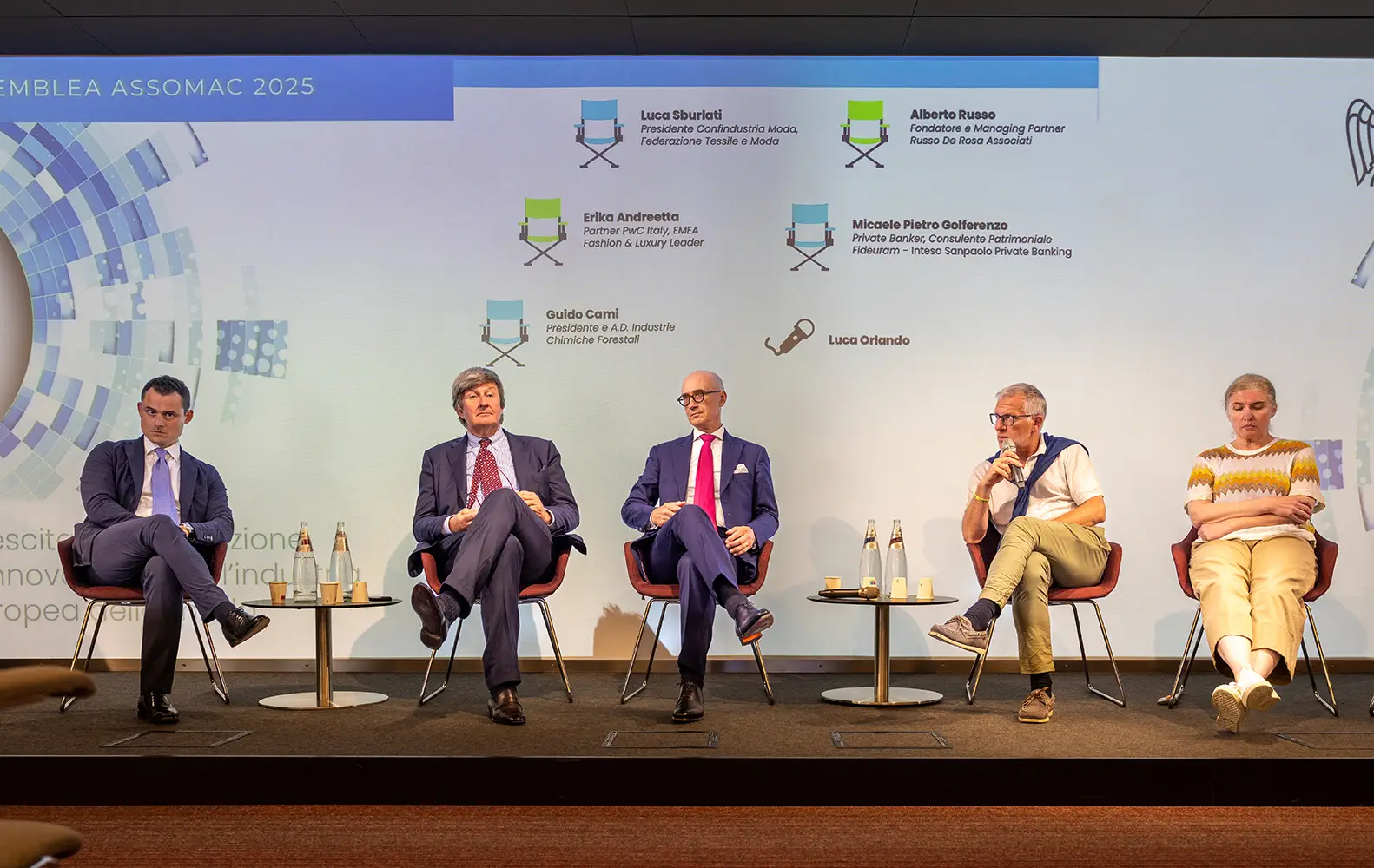 Bajo el lema “Crecimiento, colaboración e innovación para la industria europea de la moda”, la Asamblea de Assomac reunió a figuras institucionales y académicas como Maurizio Tarquini (Confindustria), Maurizio Forte (ICE) y Giuliano Noci (Politécnico de Milán).