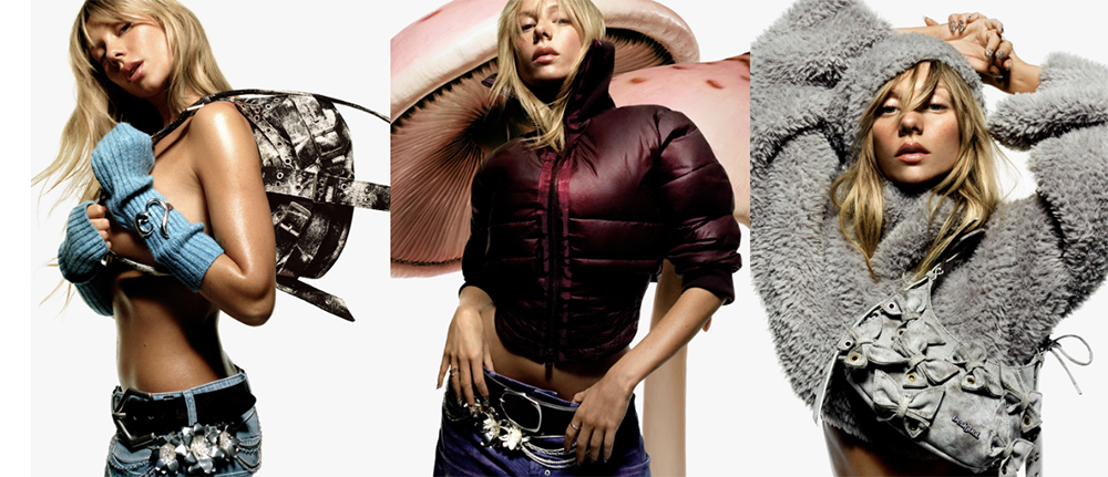 Denim protagonista: baggy jeans XXL en distintos lavados que evocan la estética Y2K, total looks formados por trench oversize y pantalón ancho con aire utilitario, y chaquetas oversize que contrastan con siluetas más ajustadas.