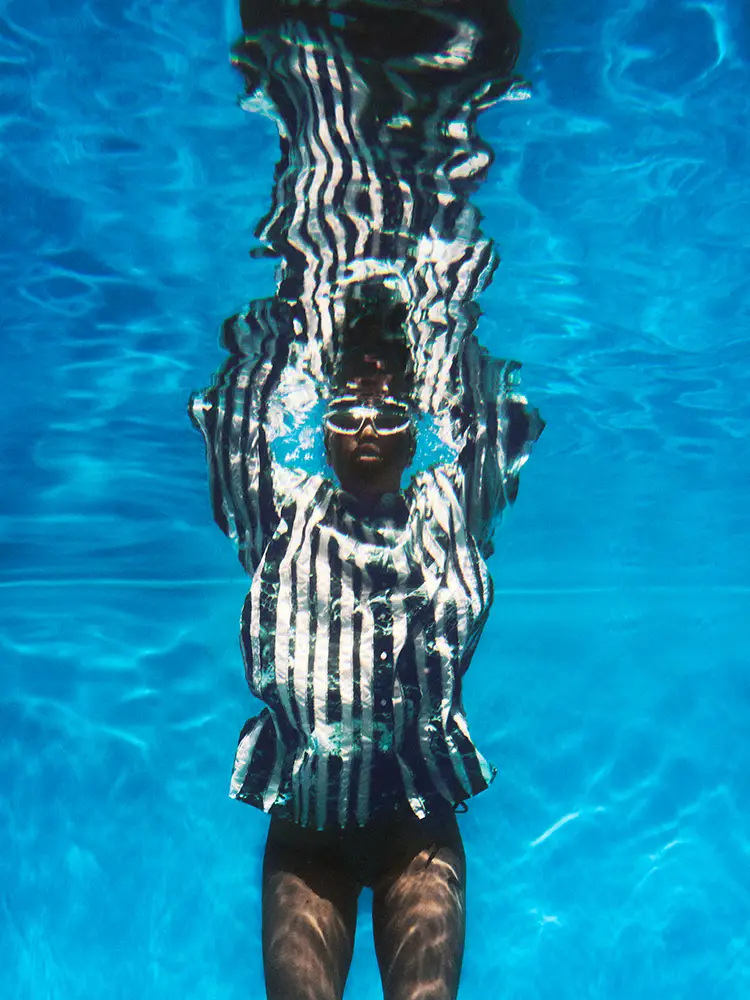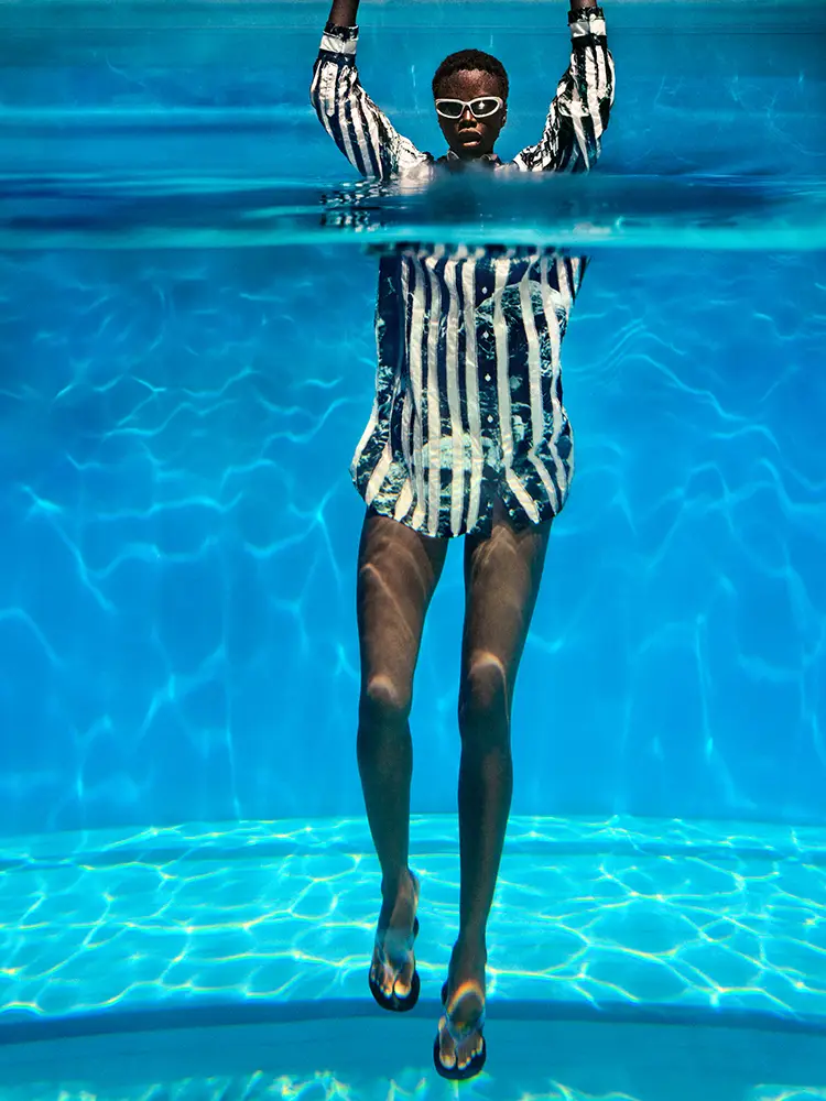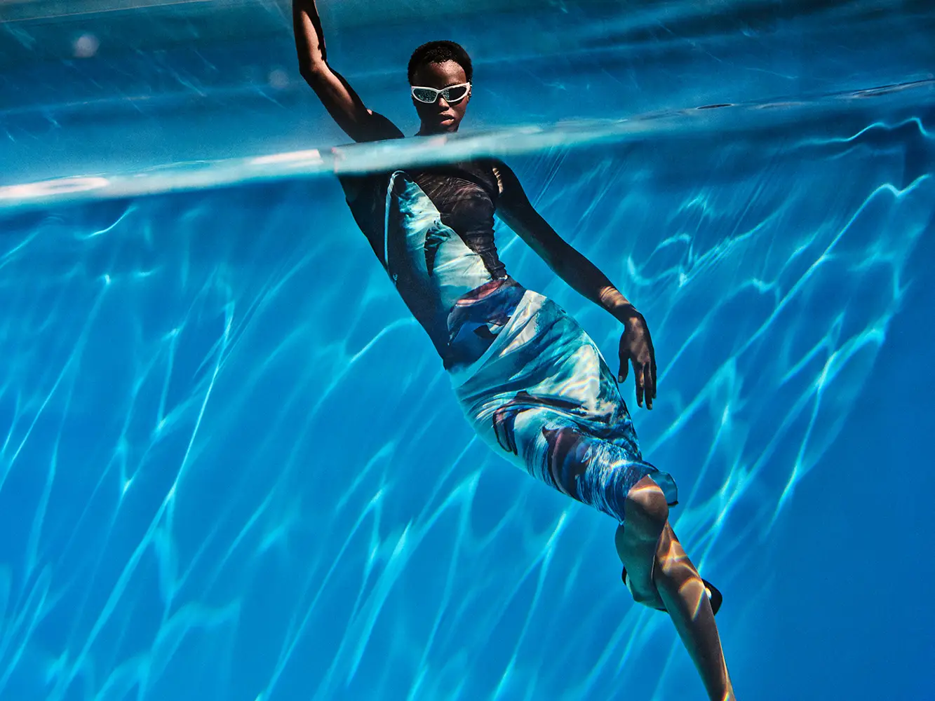 El agua es un tejido vivo en esta colección: cruza fronteras, toca todas las orillas y fluye por cada diseño. El océano conecta a personas, historias y culturas, y «High Tides» refleja eso a través de composiciones atrevidas y en capas.