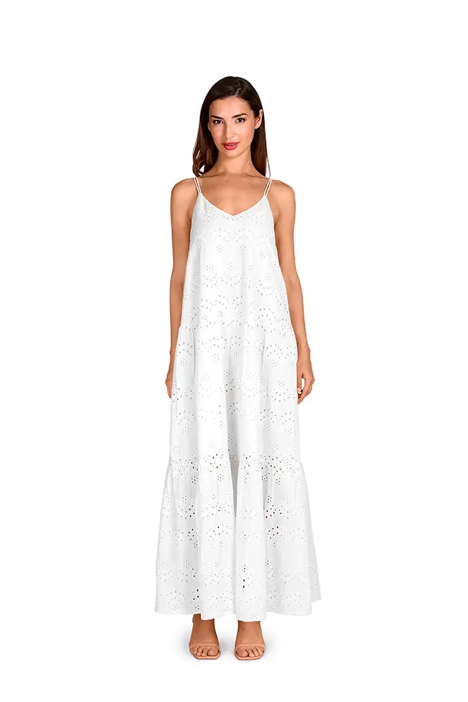 Una isla escondida en medio del océano, un rincón secreto donde la naturaleza se muestra en su máxima expresión, así es la línea Paradise que trabaja Dolores Cortés para algunas de sus prendas.