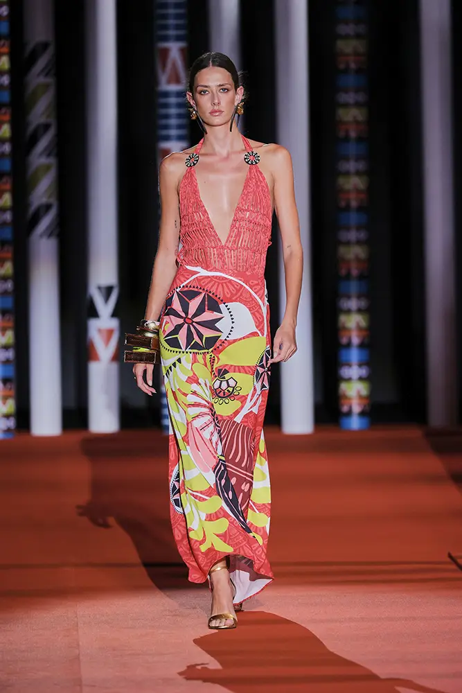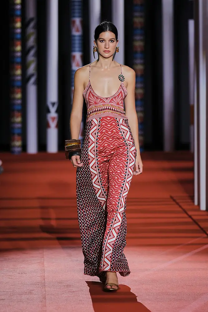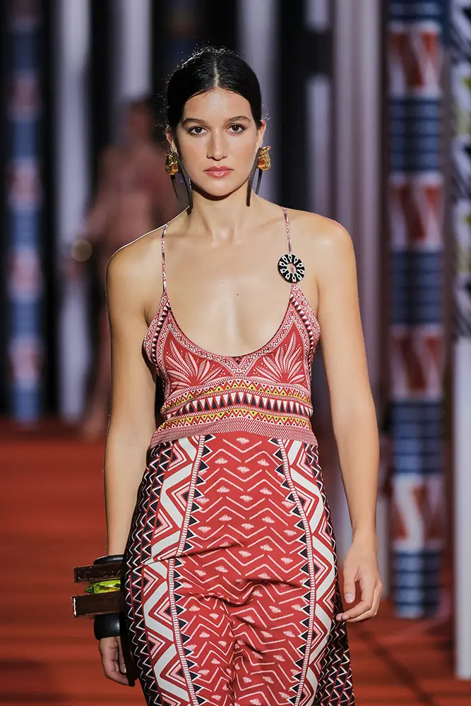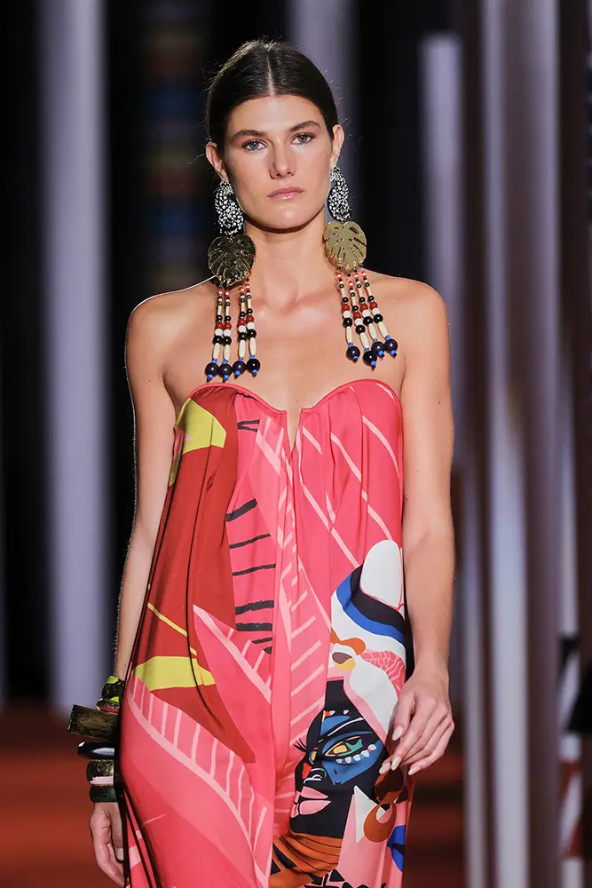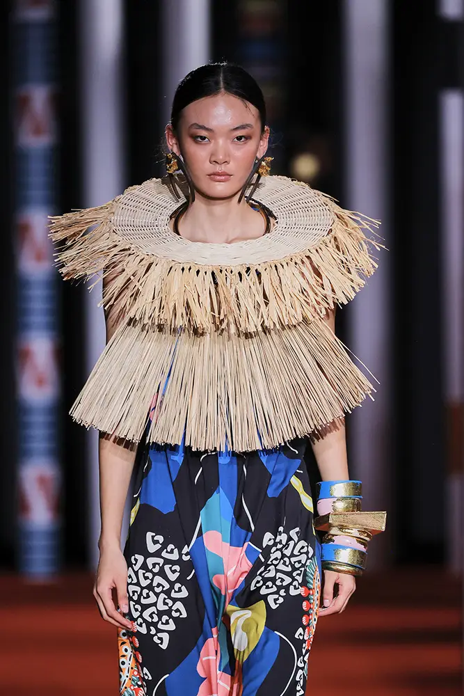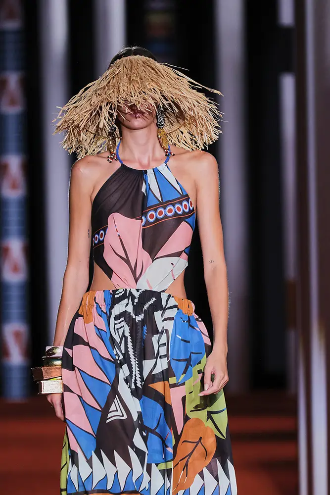 La colección Pasarela 026 de la diseñadora Dolores Cortés toma como referencia el arte mural y visual del pueblo Ndebele del sur de África. Esta propuesta reinterpreta con sensibilidad contemporánea códigos estéticos tradicionales, combinando lujo artesanal, estampados contundentes y siluetas sofisticadas.