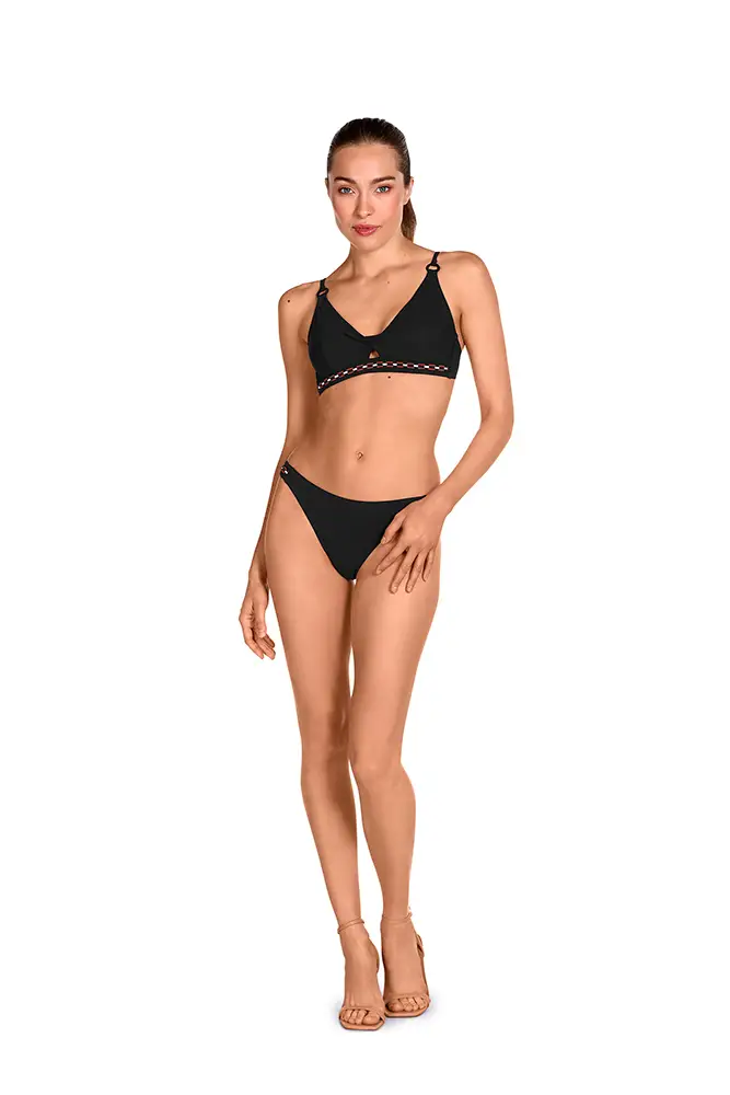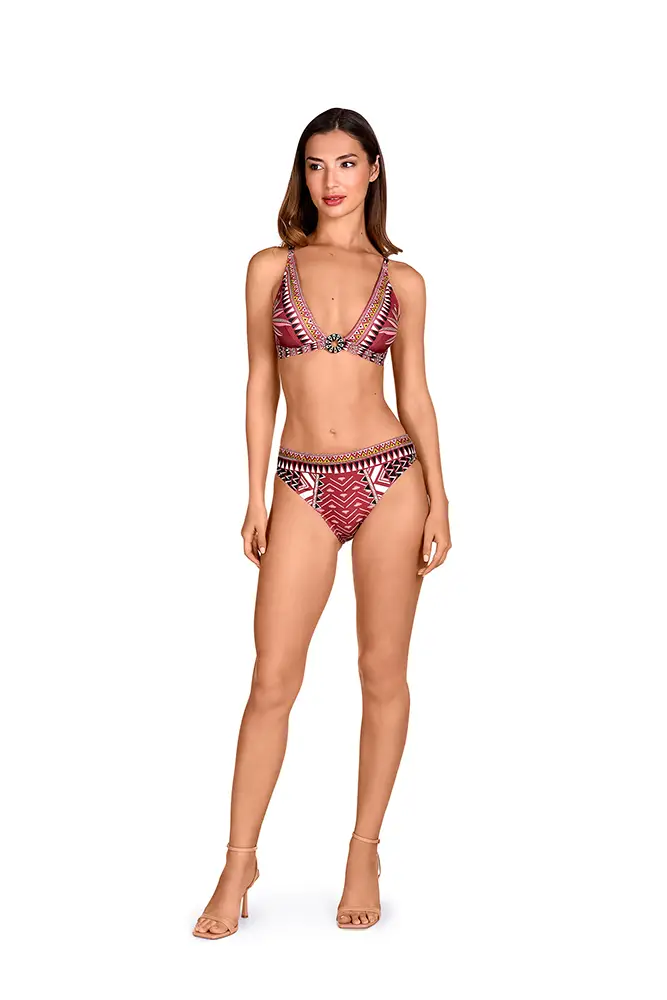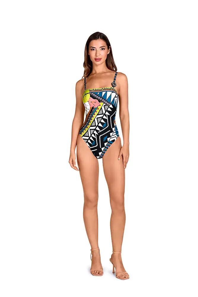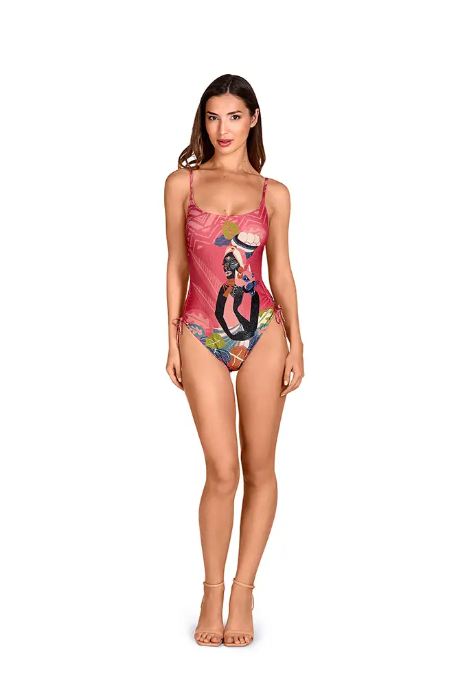 La nueva propuesta se inspira en la riqueza cultural y visual del arte Ndebele, originario del sur de África, reinterpretando sus códigos estéticos con una mirada contemporánea y sofisticada. Esta línea fusiona el legado gráfico de una cultura vibrante con siluetas actuales, redefiniendo el lujo artesanal en el universo del swimwear.
