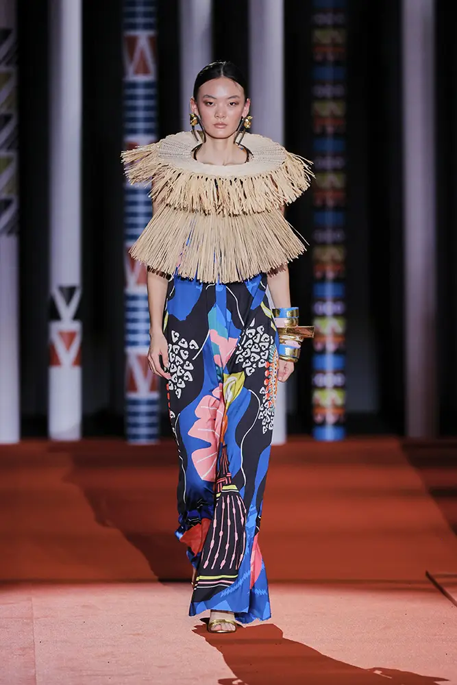 El pasado viernes por la tarde, la diseñadora Dolores Cortés desfiló con su nueva colección Primavera Verano 2026, bautizada “Ndebele”, en la Pasarela Mercedes Benz Fashion Week Madrid, dejando una impresión vibrante de color y cultura. Inspirada en el arte mural y visual del pueblo Ndebele del sur de África, esta propuesta reinterpreta con sensibilidad contemporánea códigos estéticos tradicionales, combinando lujo artesanal, estampados contundentes y siluetas sofisticadas.