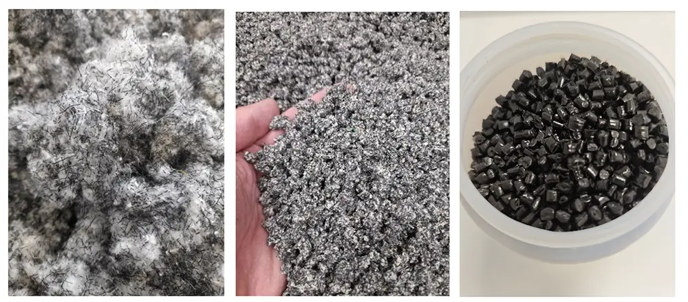 Figura 1: Recogida y clasificación de residuos de tela filtrante de polipropileno durante el proceso de trituración y peletización