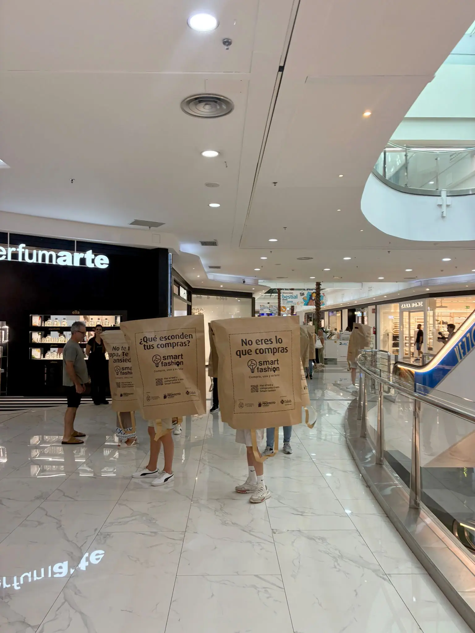 Algunas de las frases de Smart Fashion son: ‘Únete al movimiento’, ‘No eres lo que compras’, ‘¿Qué esconden tus compras?’, ‘No te falta ropa. Te sobra ansiedad’ o ‘4 de cada 10 personas admite comprar más de lo debido en compras online’.