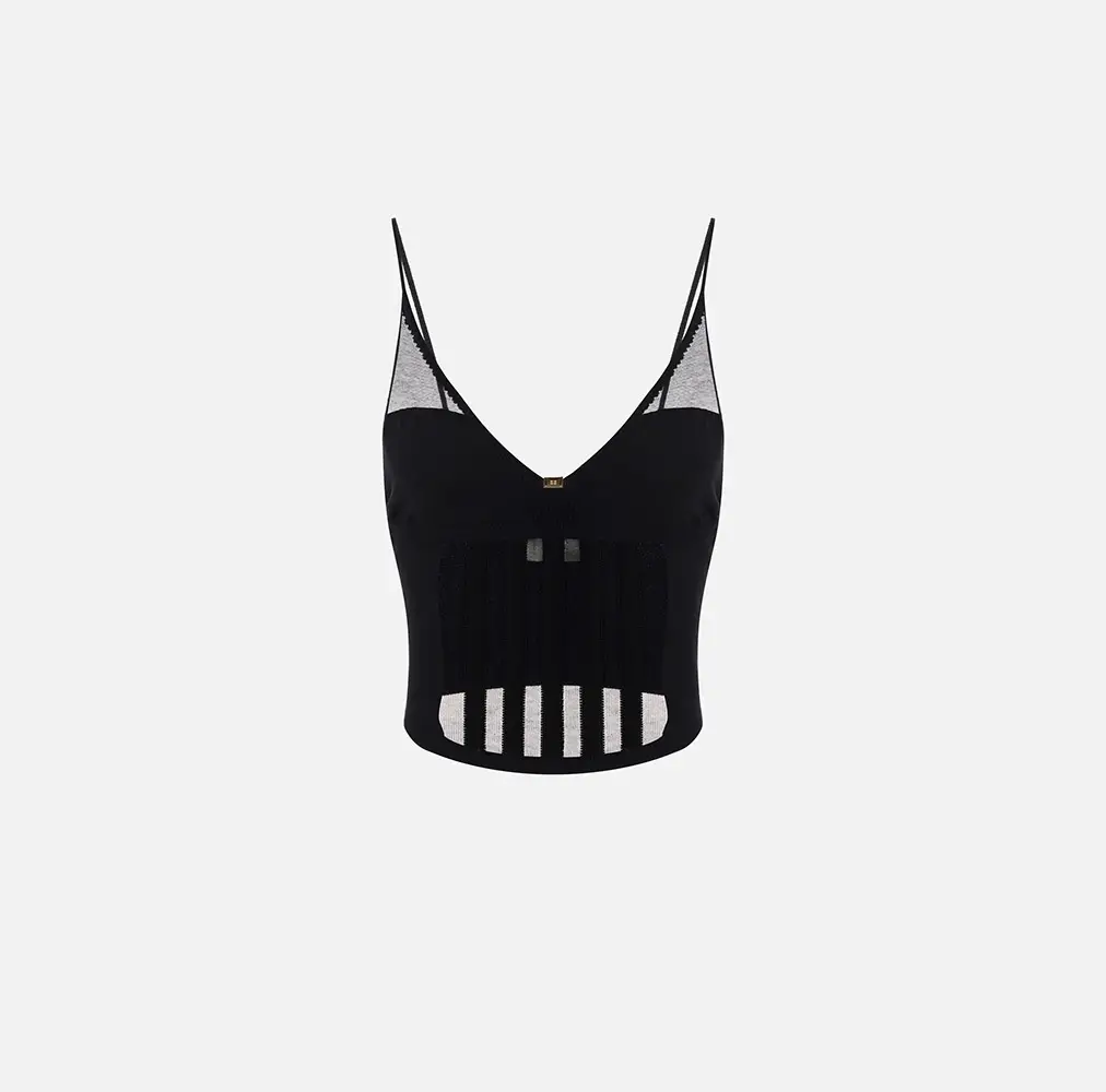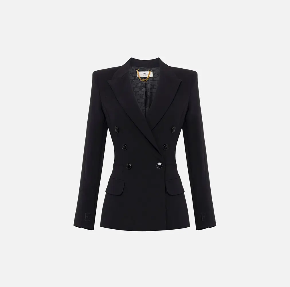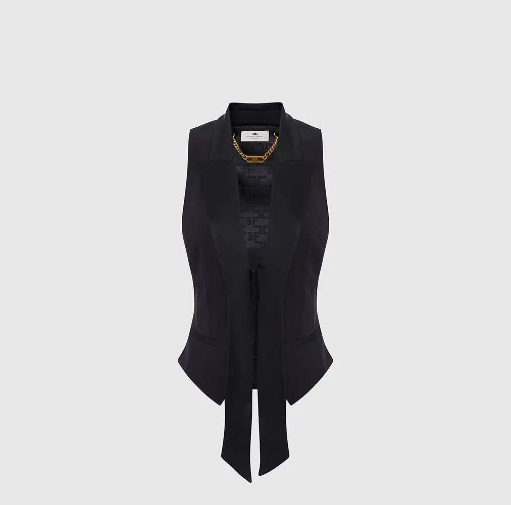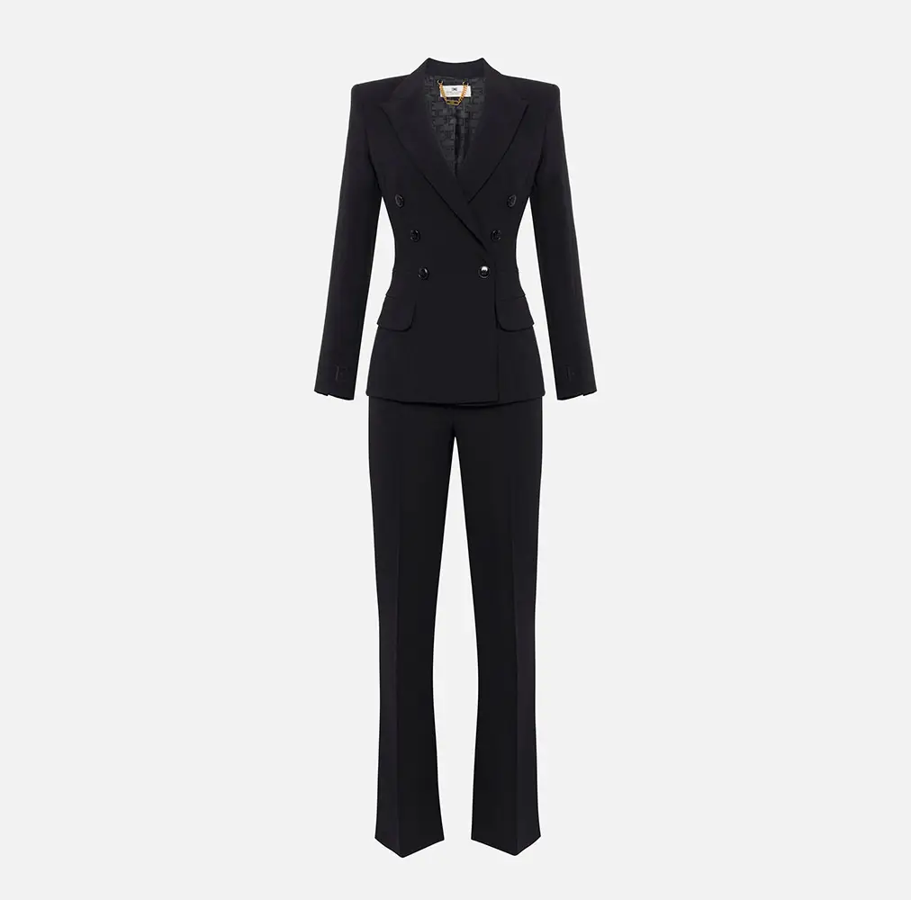 Desde trajes sastre perfectamente entallados, hasta vestidos de noche que acarician la silueta, pasando por sandalias, y bolsos perfectos para cada ocasión, la colección envuelve el universo de Elisabetta Franchi con un aura de misterio y sofisticación.