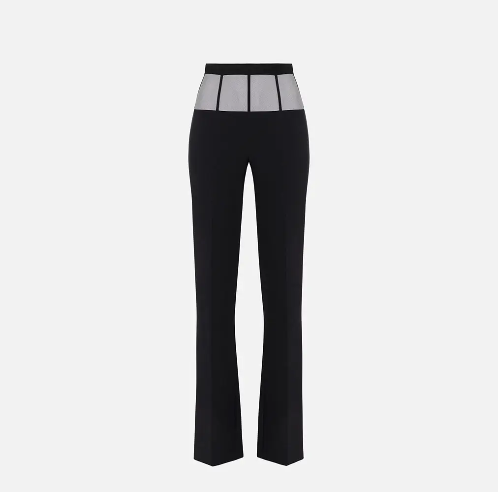 Tejidos como el crepe, el satén, la organza y la malla bordada se combinan con cortes impecables, aberturas estratégicas y detalles brillantes que reafirman la feminidad de la firma. El negro, lejos de ser neutro se convierte en una declaración de intenciones: sensual, envolvente, magnético y poderoso.