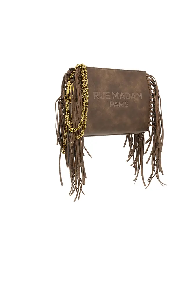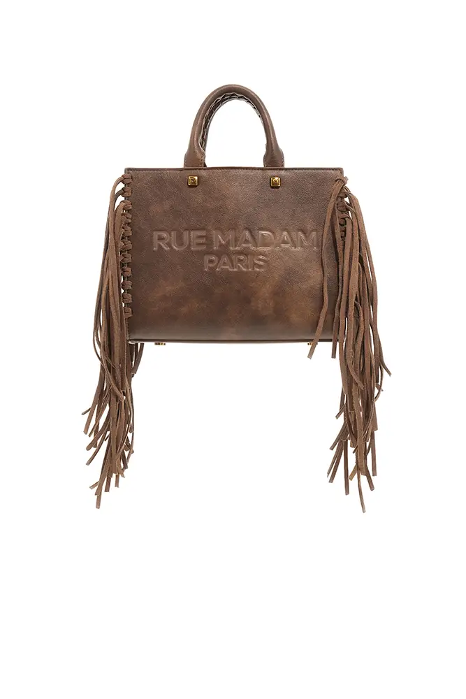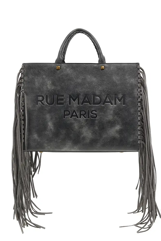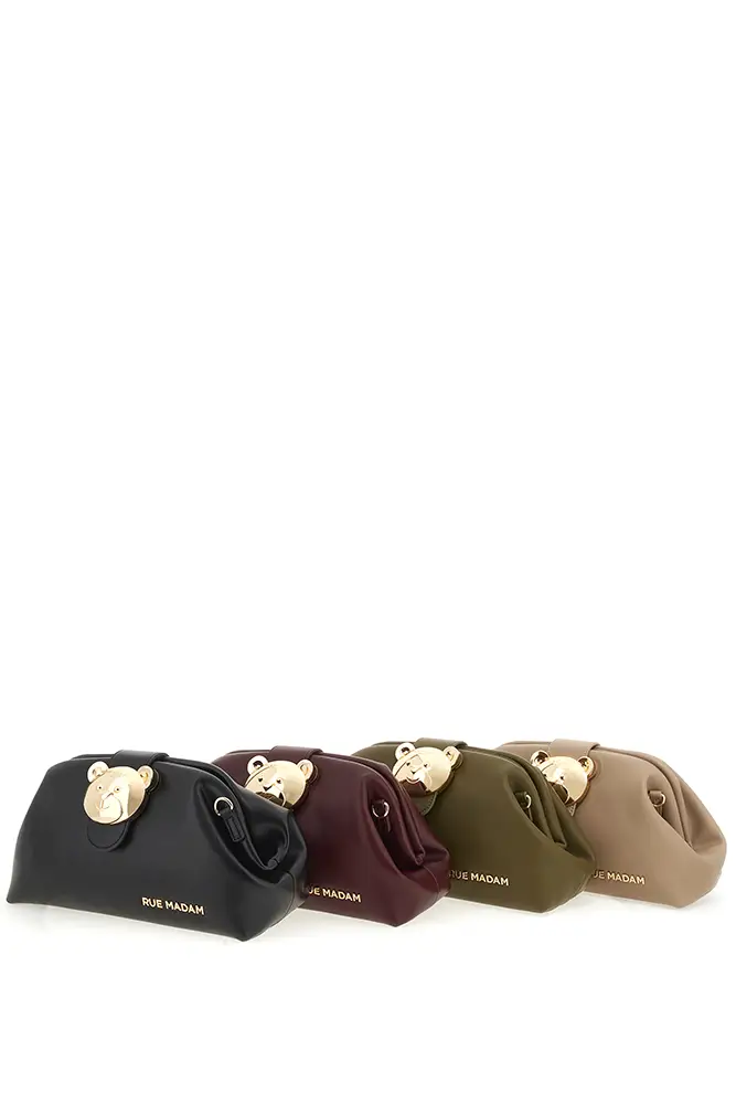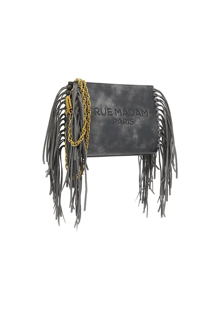 Rue Madam Paris sigue apostando por la experimentación con flecos, acabados metalizados, tachuelas y nuevas formas. El icónico pouch con hebilla de oso se renueva, y llegan modelos de estampado leopardo y cebra, así como shoppers reversibles que apuestan por la funcionalidad sin renunciar al estilo.