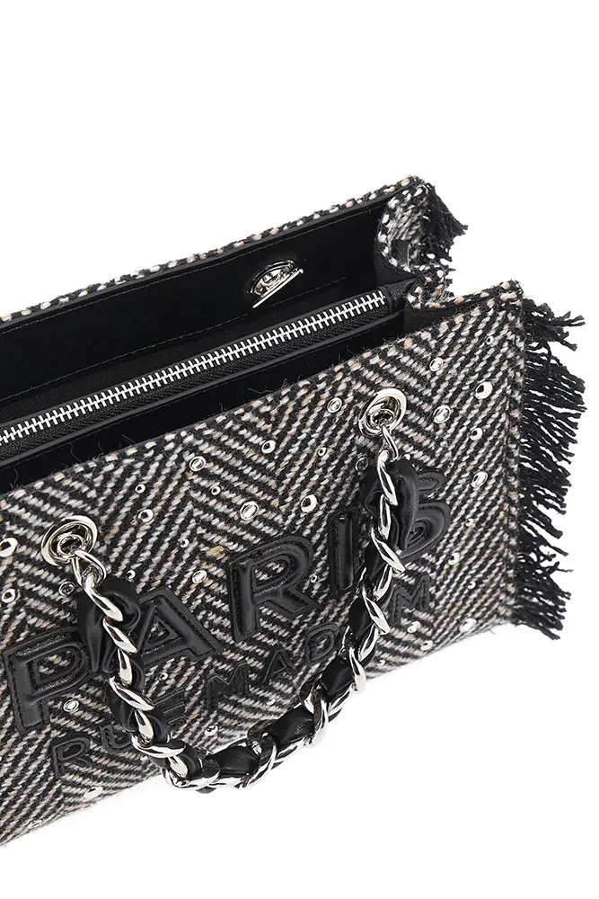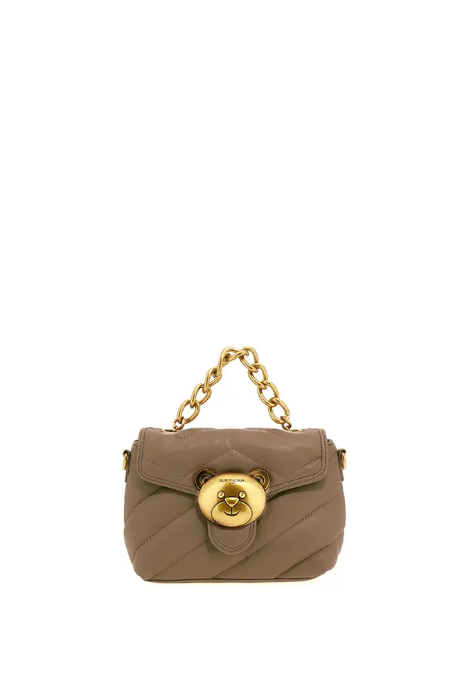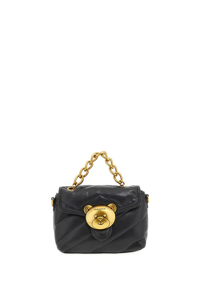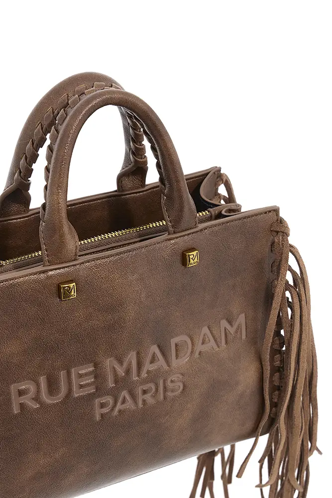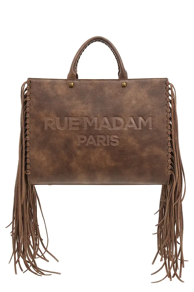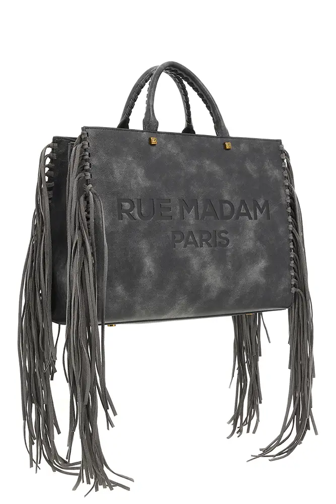 Rue Madam Paris sigue apostando por la experimentación con flecos, acabados metalizados, tachuelas y nuevas formas. El icónico pouch con hebilla de oso se renueva, y llegan modelos de estampado leopardo y cebra, así como shoppers reversibles que apuestan por la funcionalidad sin renunciar al estilo.