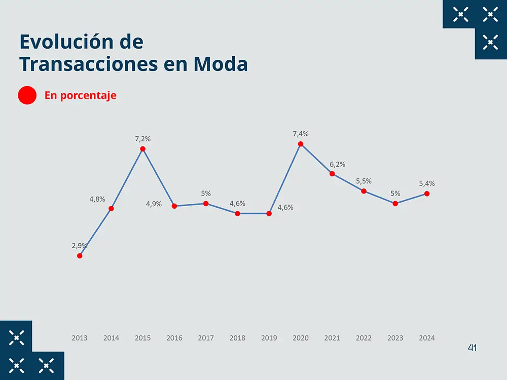 Por otro lado, el canal de venta online continúa experimentando un fuerte crecimiento y, aunque es complejo obtener un dato exacto y desglosarlo por formato (las propias cadenas no desglosan su porcentaje de venta en este canal), haciendo cruces de los diferentes informes y fuentes sobre el comercio online, concluimos que en 2024 el canal online en el comercio textil representó en torno al 16,8% de la facturación total.