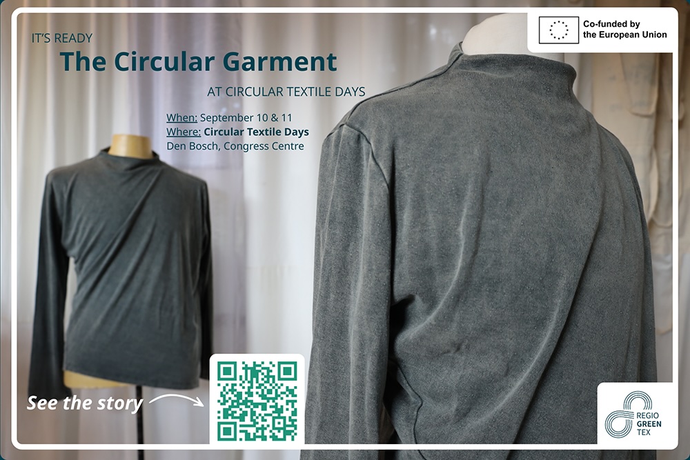 En el marco de los Circular Textile Days celebrados en Den Bosch (Países Bajos), se presentó oficialmente The Circular Garment, la primera prenda diseñada y producida bajo un concepto totalmente circular en Europa. La iniciativa, desarrollada dentro del proyecto RegioGreenTex y coordinada por EURATEX, representa un avance decisivo en la aplicación real de los principios de la economía circular al sector textil.