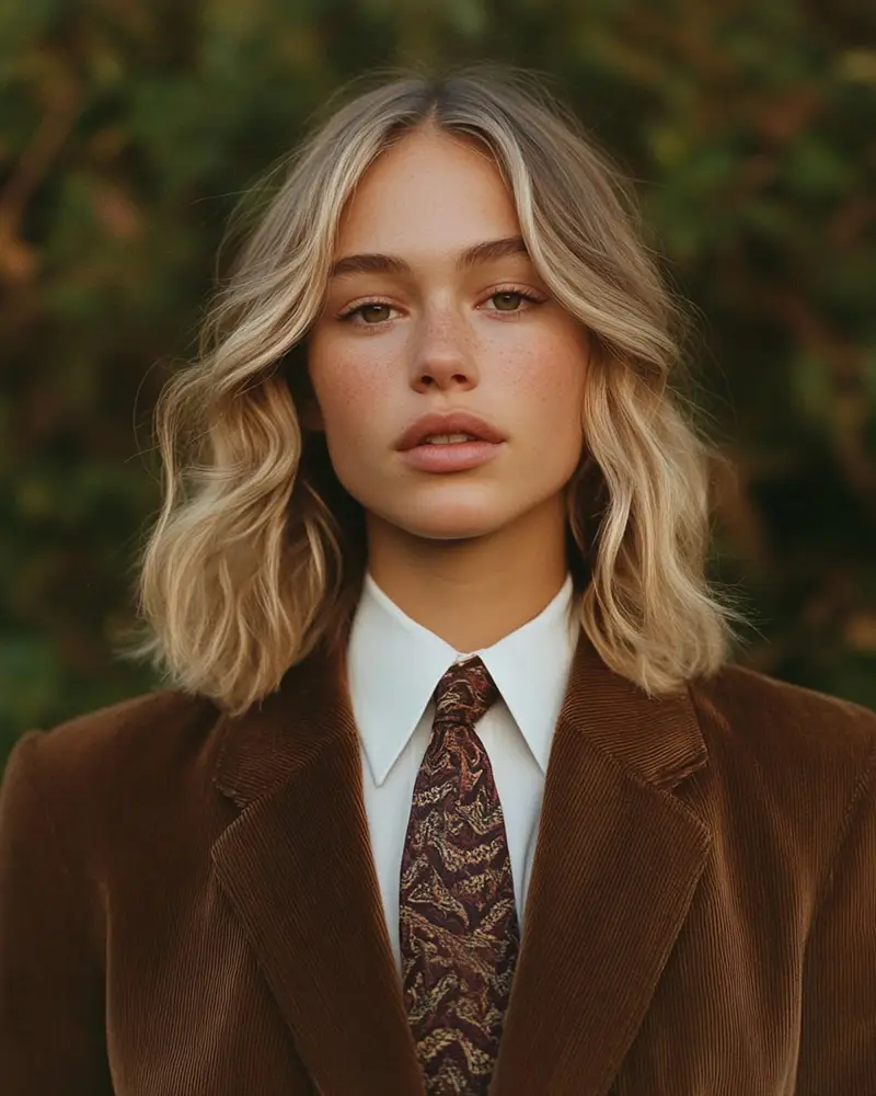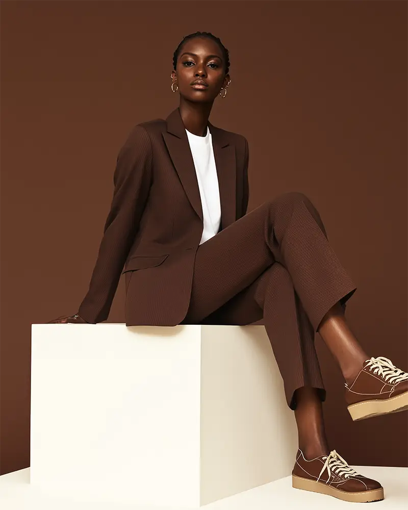 Las americanas en marrón oscuro, combinadas con blusas en tonos melocotón, o prints florales aportan un contraste sutil que ilumina el conjunto sin perder sobriedad. Además, los tonos mocha intensos refuerzan la profundidad de esta paleta, convirtiéndose en aliados ideales para crear estilismos sofisticados, tanto para la oficina como para ocasiones más formales.
