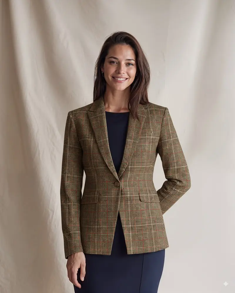El marrón chocolate se convierte en uno de los grandes protagonistas de la temporada, una apuesta segura para quienes buscan elegancia atemporal con un toque contemporáneo. En Sumissura, este tono se refleja en trajes de chaqueta de lino, perfectos para quienes prefieren un look pulido con un aire ligero, y en americanas de cuadros que reinterpretan el clásico británico con un giro moderno.