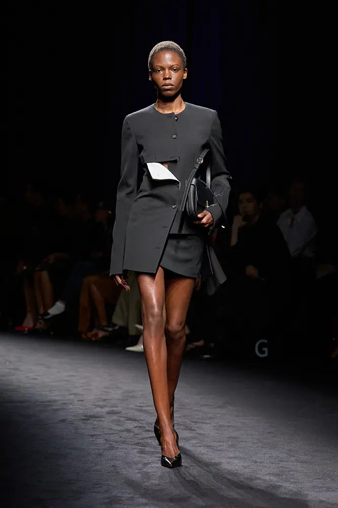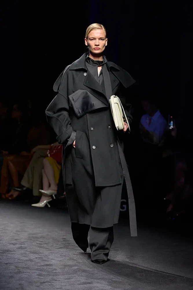 En accesorios, se presenta una nueva silueta de bolso: delgada, elegante y cerrada con una placa Gancini, disponible en tres tamaños, mientras que las proporciones East-West del Hug se renuevan con nuevas combinaciones de colores. En ropa masculina, se utiliza un práctico bolso bandolera de bolsillo junto con un bolso Hug de piel de becerro tejida.