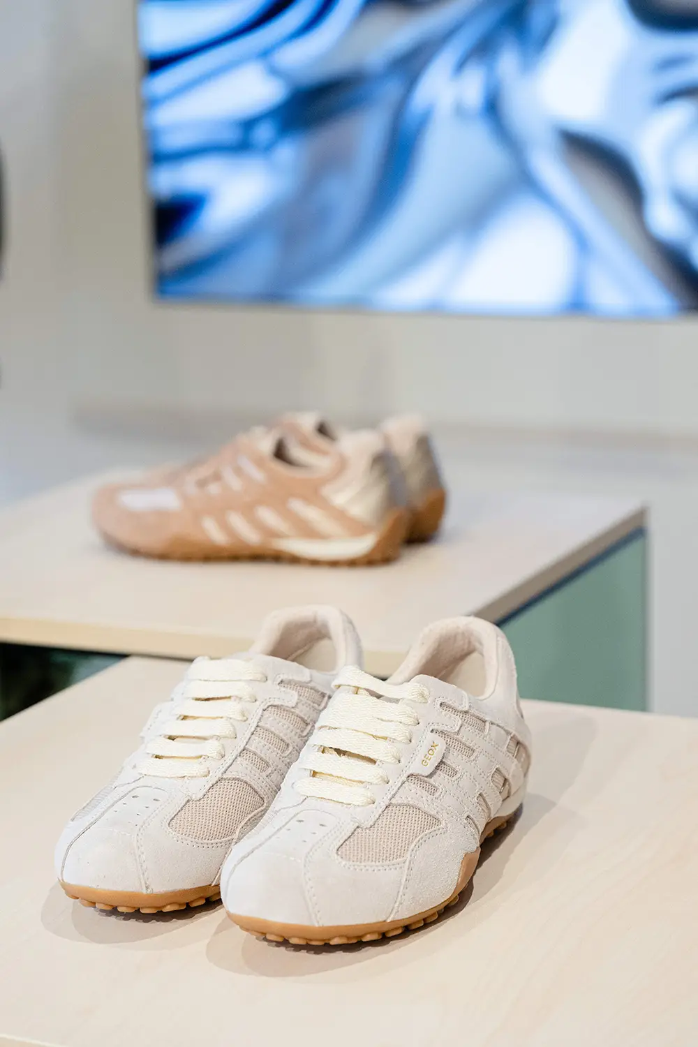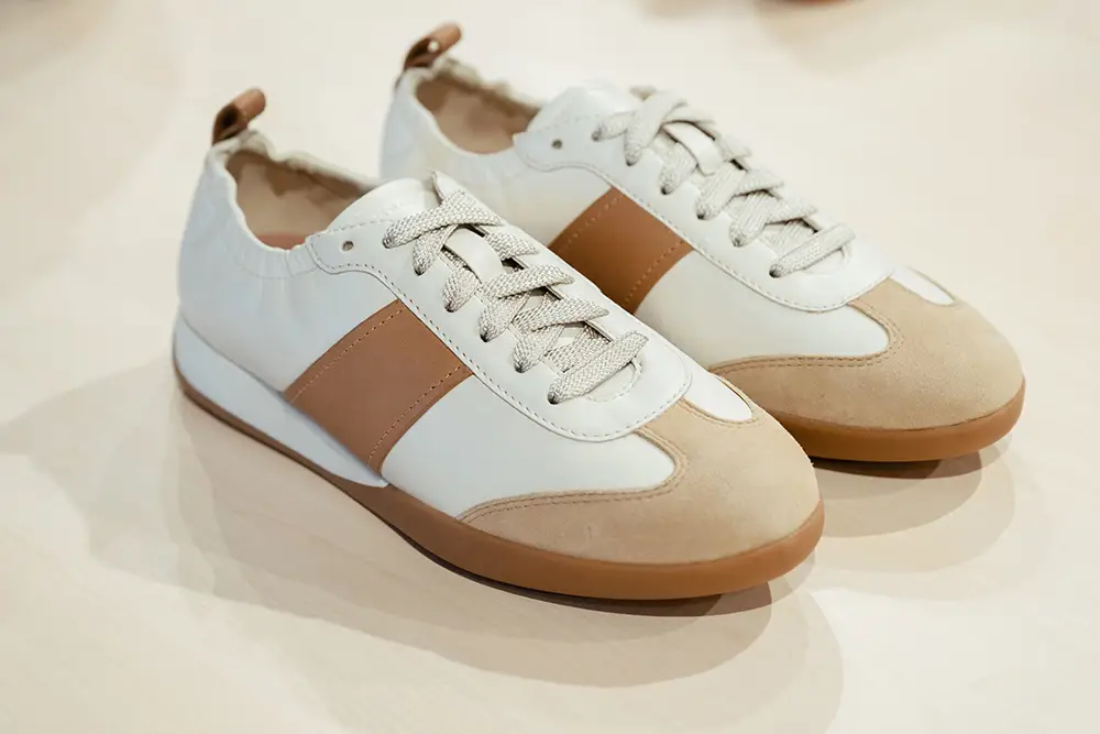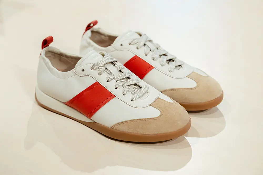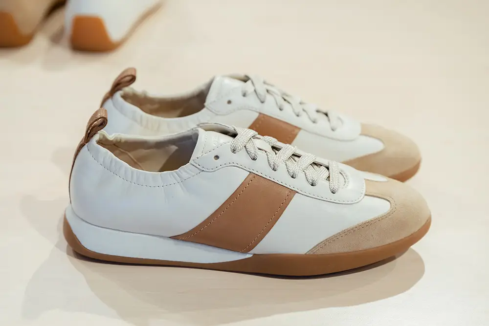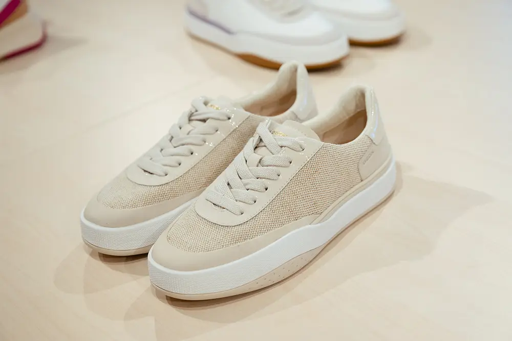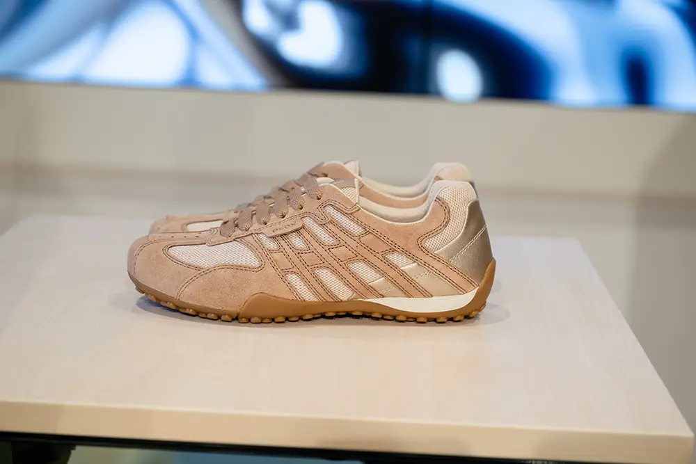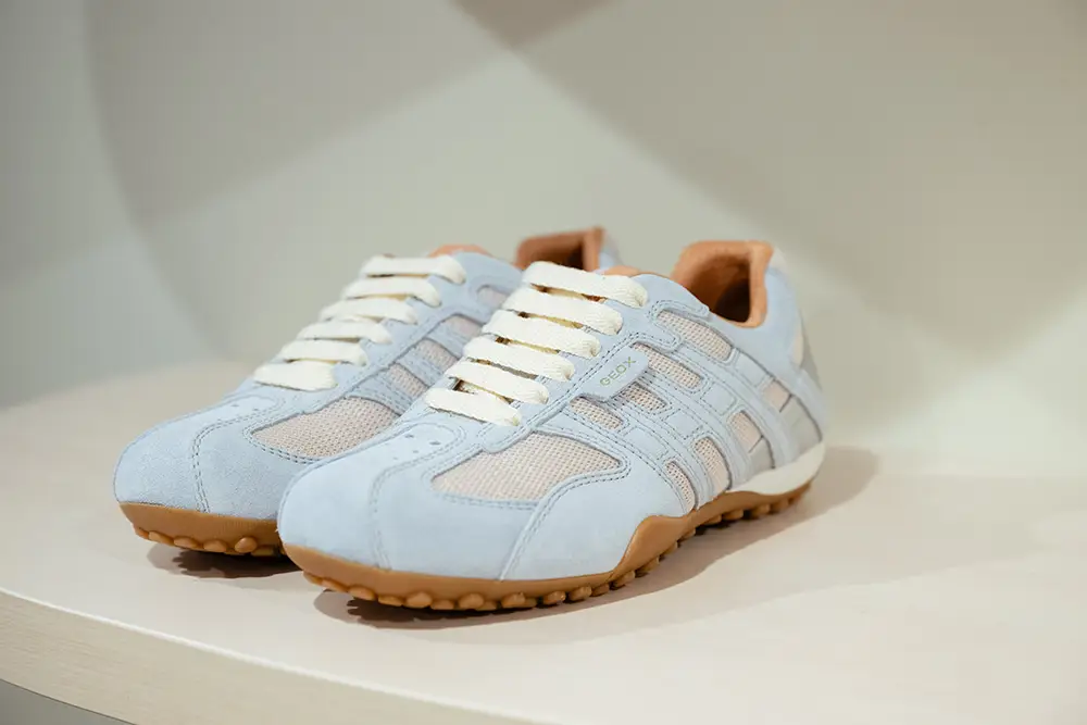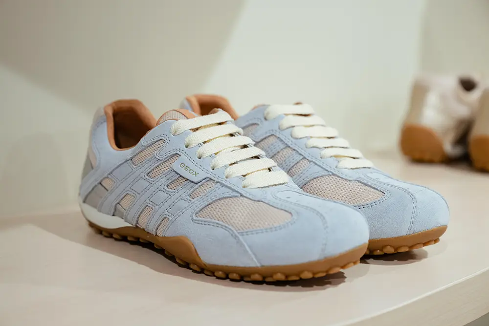 Las zapatillas exploran tendencias contemporáneas con suelas gruesas, siluetas estilizadas, combinaciones de materiales como ante, lona y cuero, y detalles llamativos como neones, brillo o cordones contrastantes. La colección también mira al pasado con modelos retro como Snake Original, ahora en versión femenina con tonos pastel y metálicos, y a la innovación con Blue Touch, minimalista, tecnológica y con un diseño retro visible gracias a su inserto azul “Respira”.