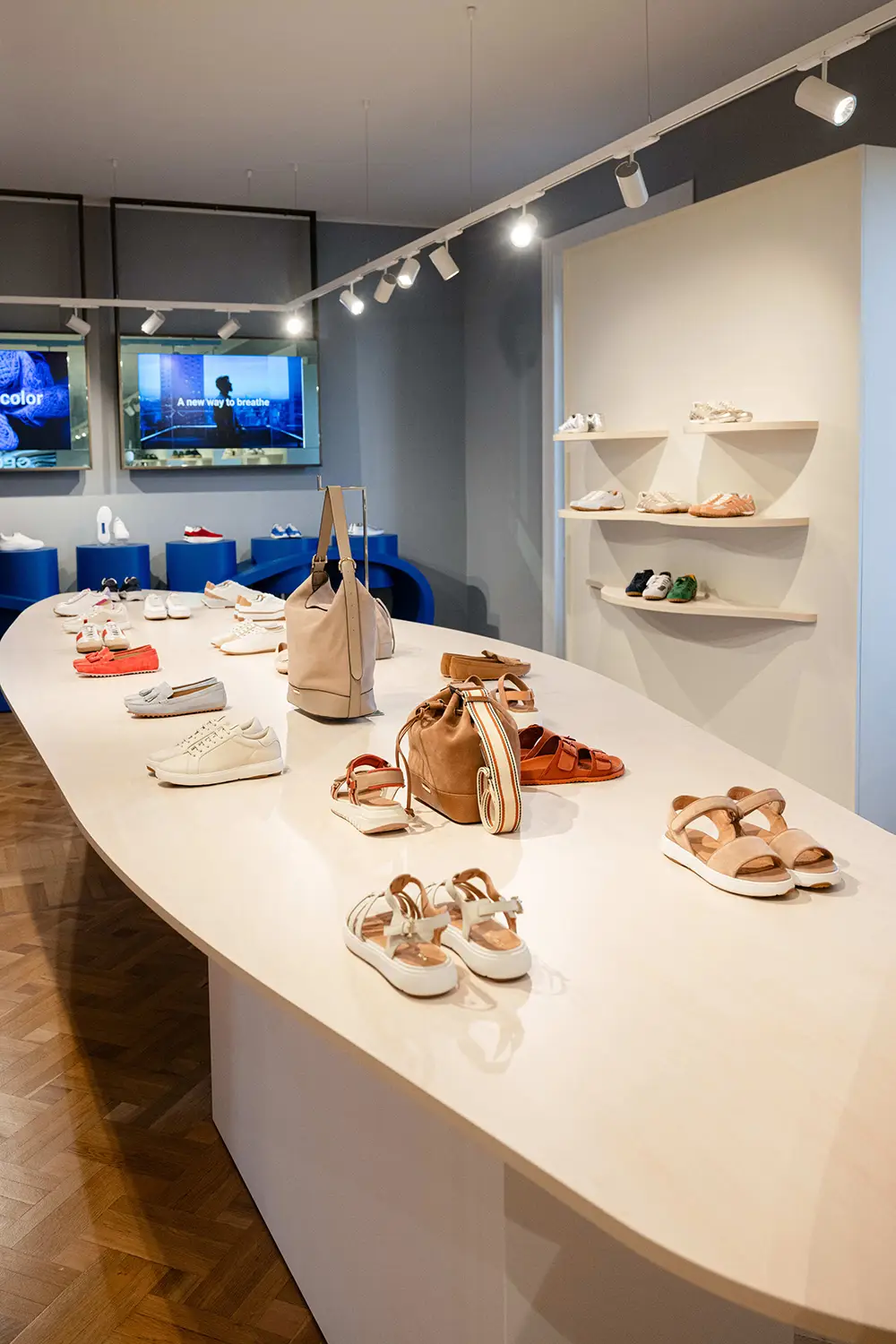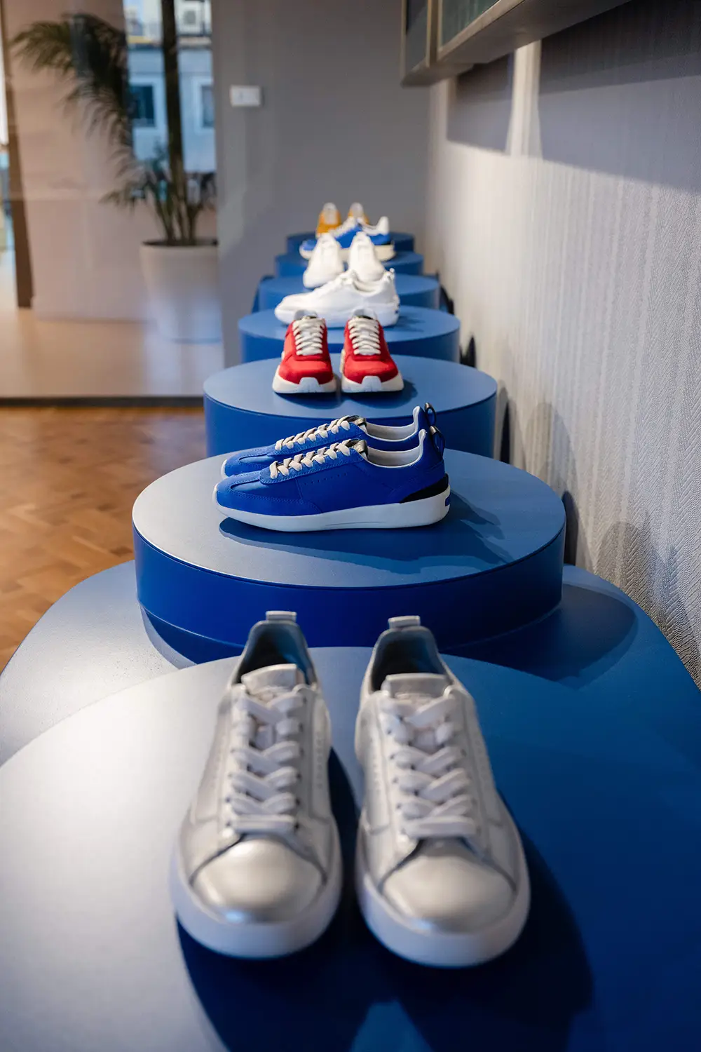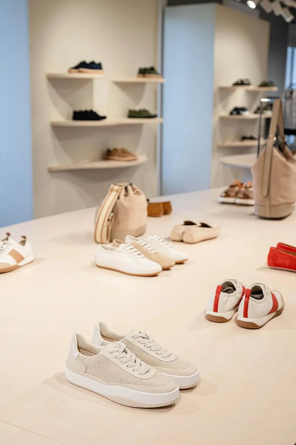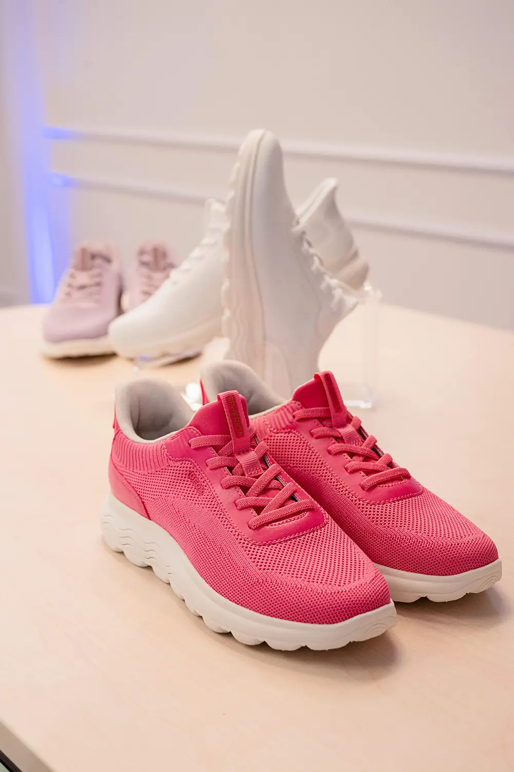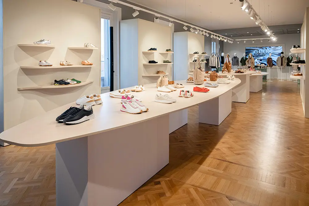 Las zapatillas exploran tendencias contemporáneas con suelas gruesas, siluetas estilizadas, combinaciones de materiales como ante, lona y cuero, y detalles llamativos como neones, brillo o cordones contrastantes. La colección también mira al pasado con modelos retro como Snake Original, ahora en versión femenina con tonos pastel y metálicos, y a la innovación con Blue Touch, minimalista, tecnológica y con un diseño retro visible gracias a su inserto azul “Respira”.