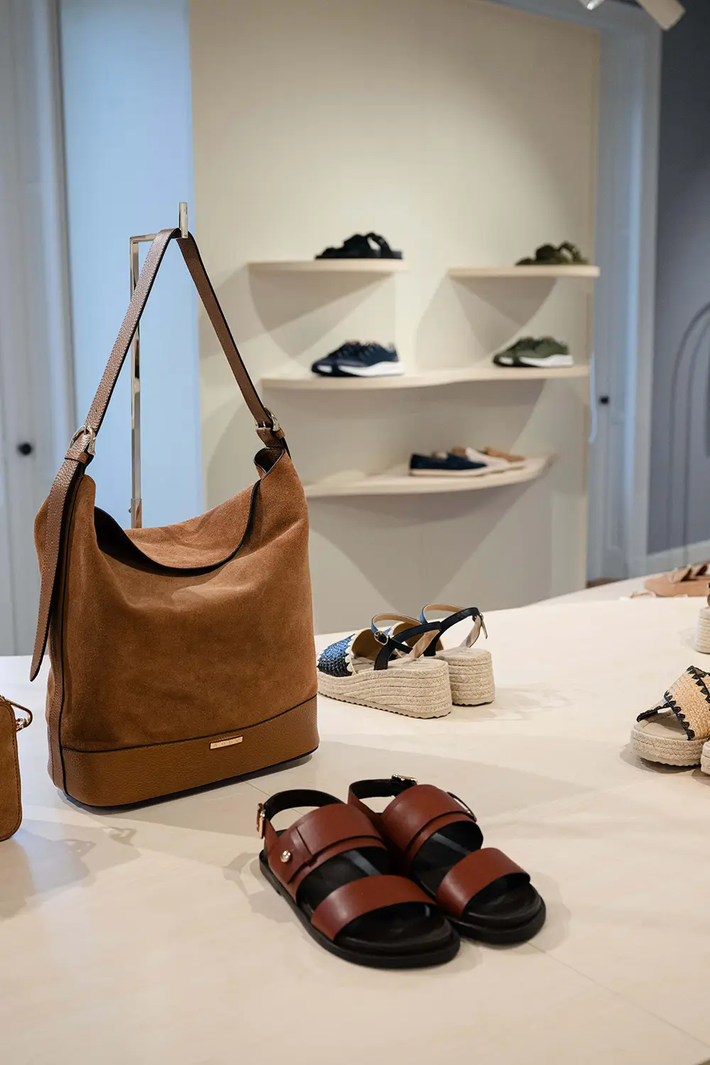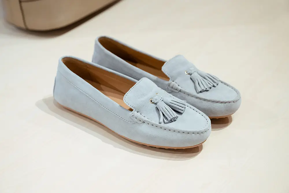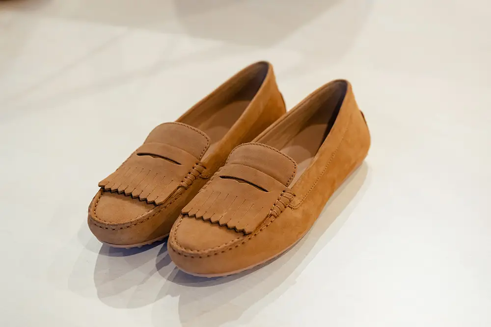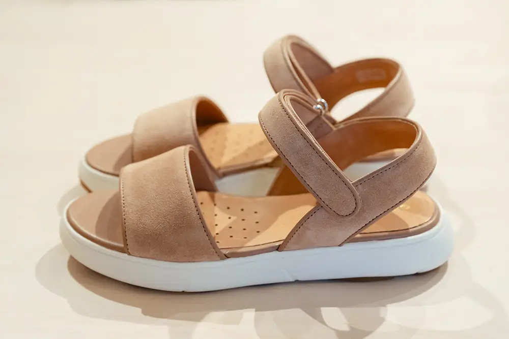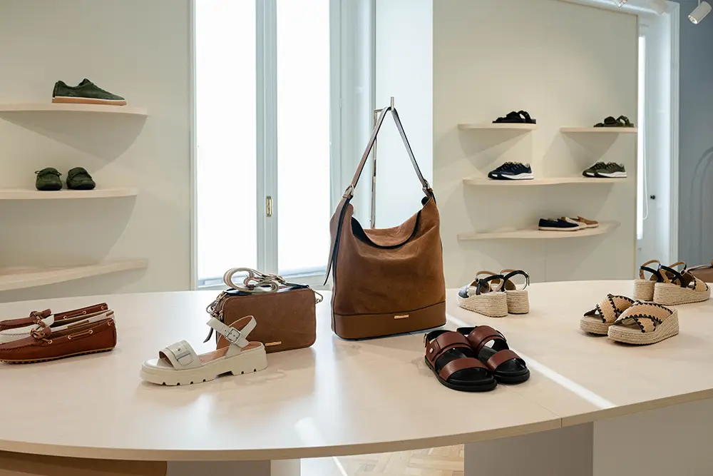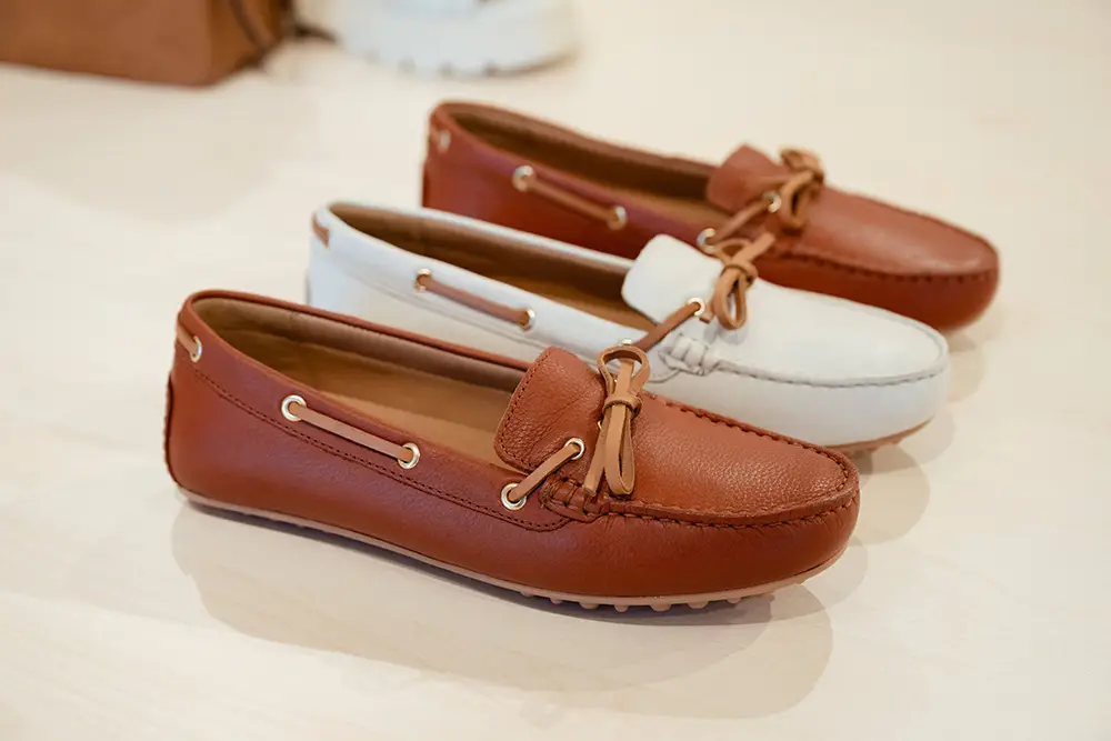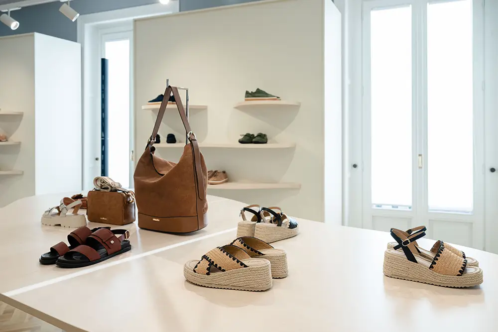 El espíritu veraniego se refleja en diseños casuales y atemporales, como los mocasines unisex en napa suave o ante de colores, sandalias y alpargatas con suelas acolchadas y tiras anchas, pensadas para disfrutar del verano con estilo y confort.