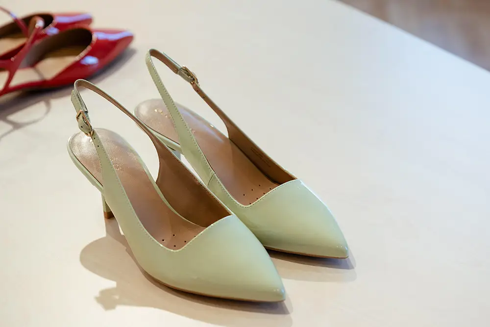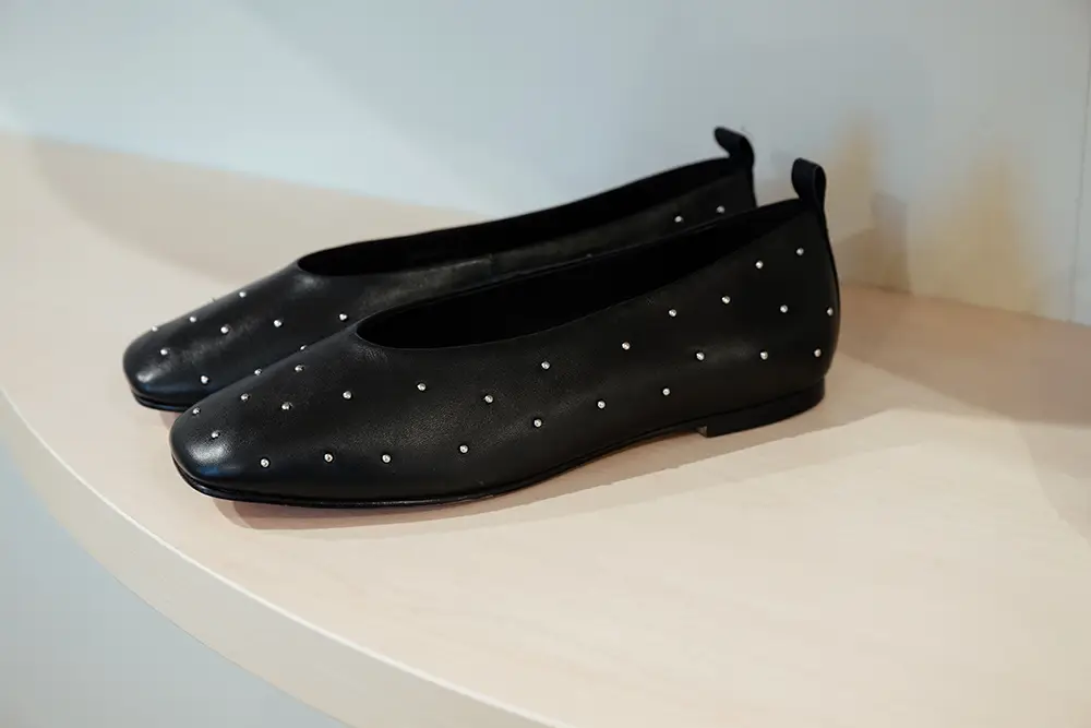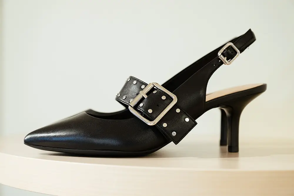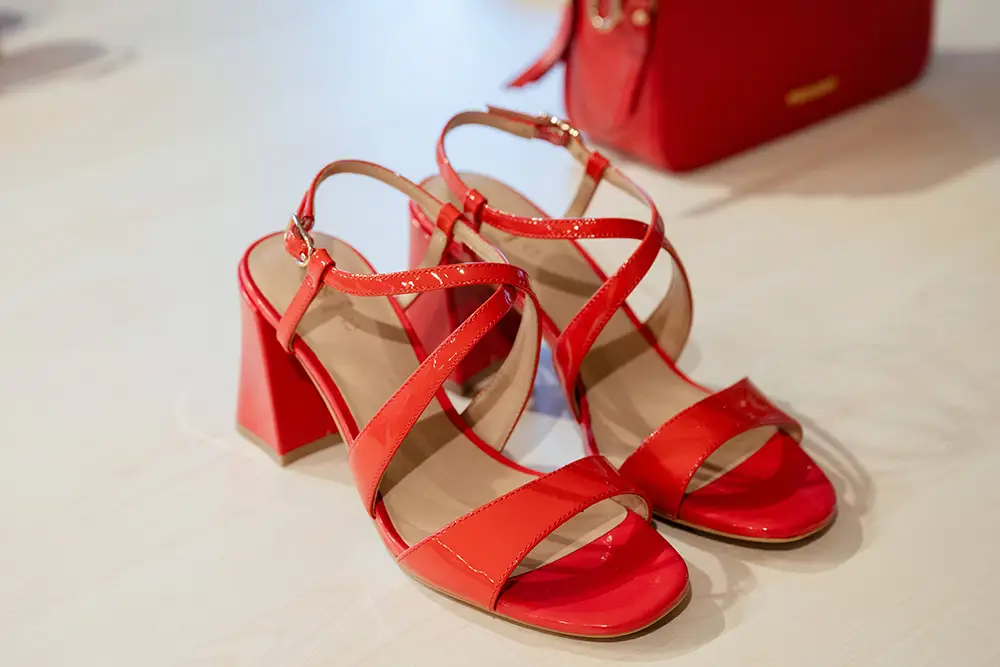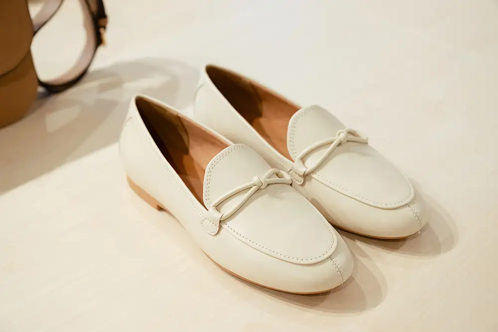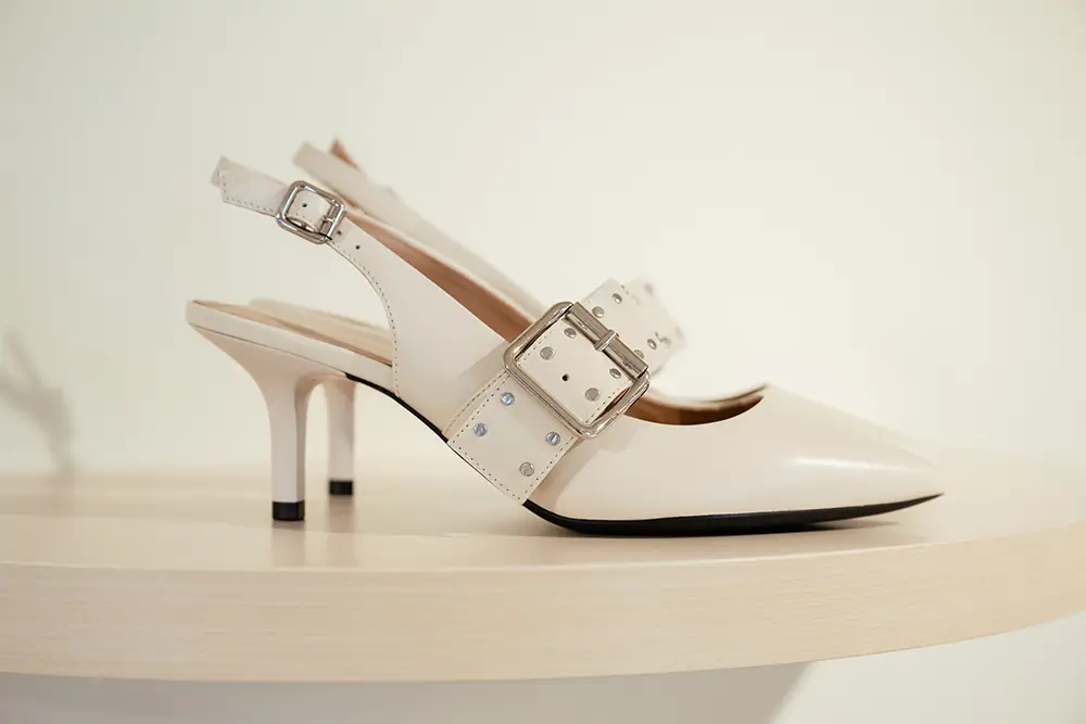 En la línea más formal y sofisticada, destacan bailarinas, mocasines y sandalias de tiras cruzadas o slingbacks de altura media, en charol o cuero metálico, con detalles delicados como lazos y studs planos. Las paletas incluyen verde menta, rojo fresa y púrpura pálido, combinando elegancia y comodidad para cualquier momento del día.