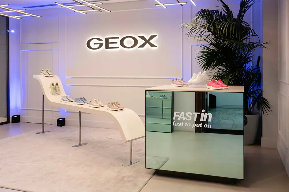 GEOX es una empresa italiana conocida por su excelente producción de calzado y ropa informal para hombres, mujeres y niños con un fuerte componente tecnológico. Los logros de GEOX se sustentan en su constante investigación y en el uso de soluciones innovadoras que ofrecen transpirabilidad, impermeabilidad y amortiguación.