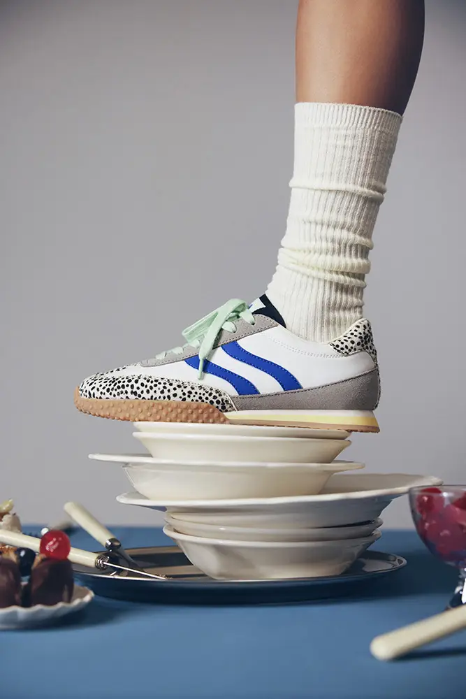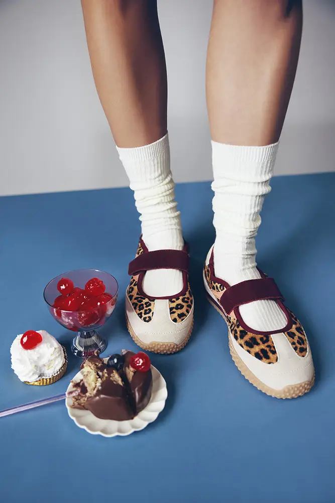 La cápsula explora nuevos estampados con pelo natural —dálmata, vaca y leopardo— tratados desde una mirada fresca y contemporánea. Sneakers y bailarinas reinterpretadas con ironía y sofisticación, que aportan carácter a siluetas depuradas y fáciles de llevar.