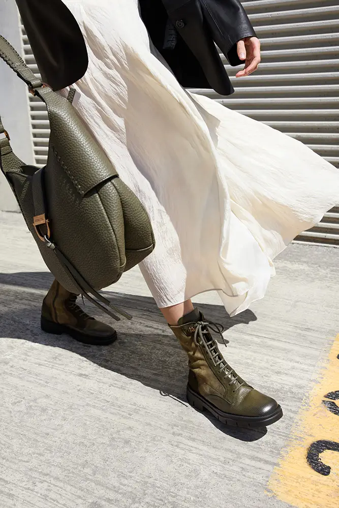 La colección Pre-Fall 25 de Hispanitas irrumpe con fuerza, presentando un nuevo enfoque que combina intención y espontaneidad. Se destacan modelos como la bota Verona en negro, la bailarina Turin en gris o negro, el deportivo Kansas en tonos taupe, gris y oro, los mocasines de silueta clásica pero con estampados y el botín militar en verde y crudo, todos ellos pensados para acompañar el ritmo del día con naturalidad y estilo effortless.