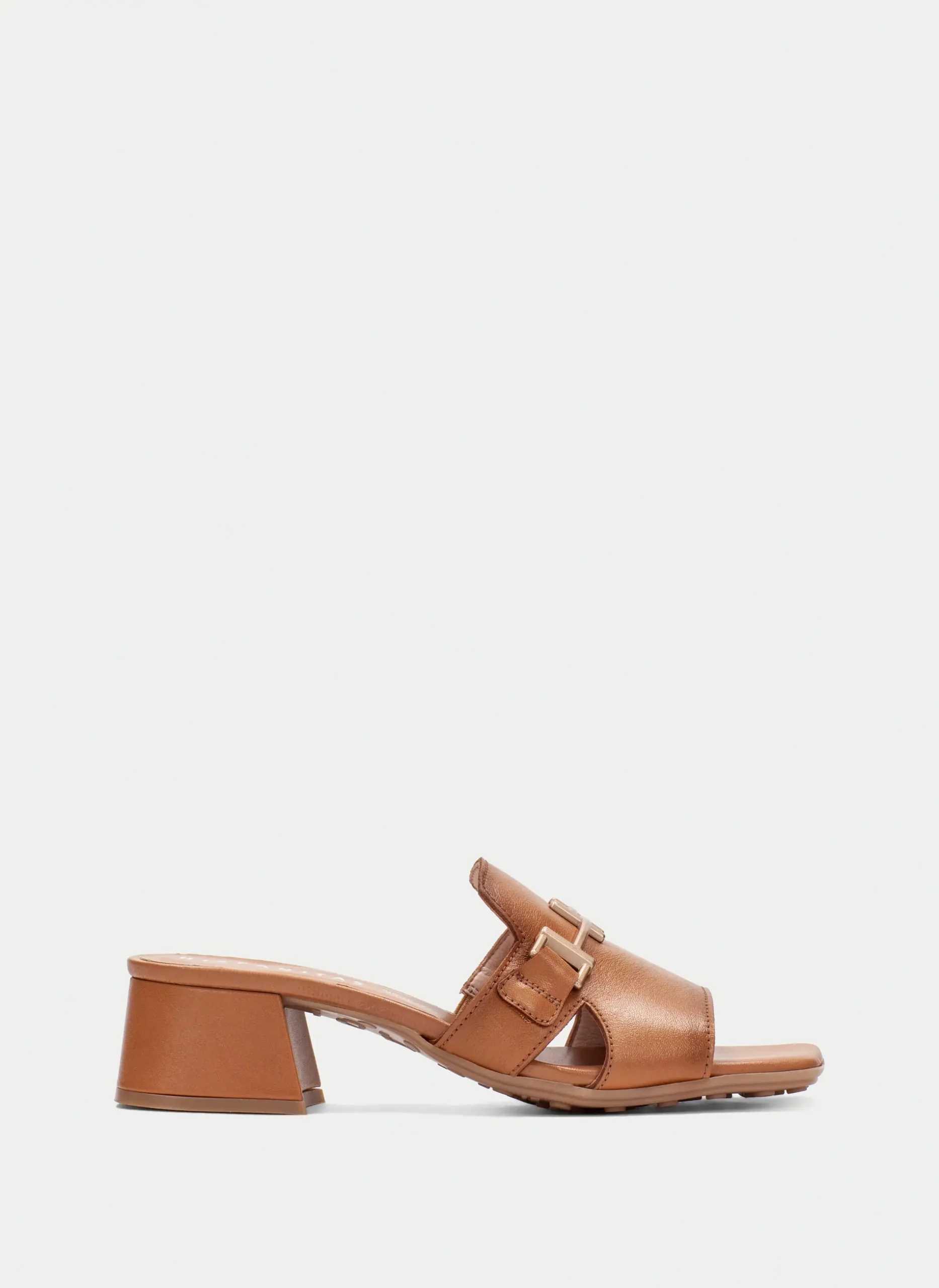 Diseñada como un modelo destalonado, con tecnología triflow con triple almohadillado en la zona de la pisada, que absorbe los impactos y aporta un efecto acolchado al caminar, esta sandalia está decorada con una hebilla en el empeine y rematada con un tacón ancho de 4,5 cm, que proporciona comodidad y seguridad durante todo el día.