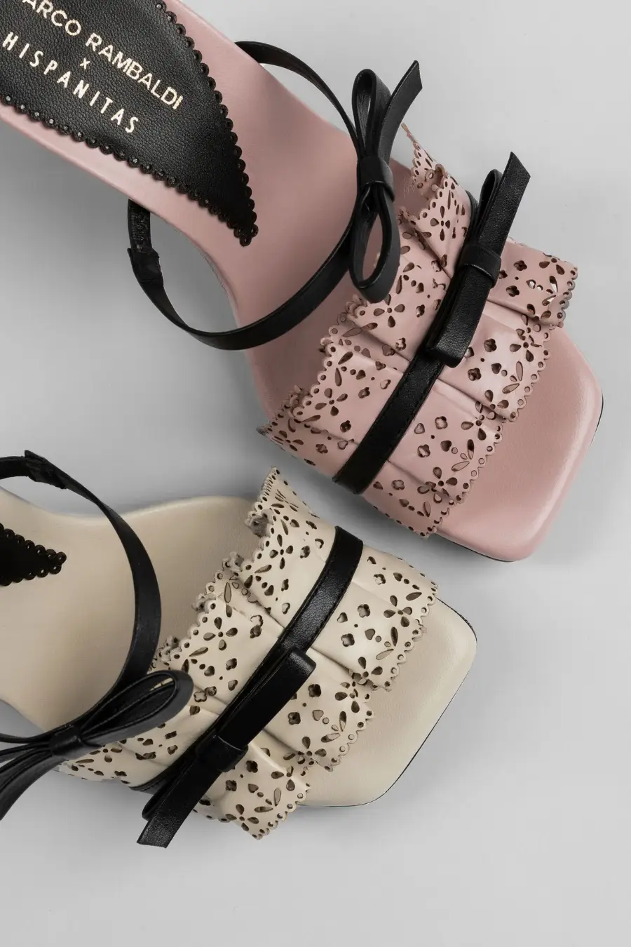 La memoria y la emoción atraviesan también todo el proceso creativo. El diseñador reconoce una inspiración profundamente personal: “Una gran inspiración viene de mi infancia. En casa de mi abuela veía divas italianas en la televisión, como Ornella Vanoni, y a menudo veía este tipo de sandalia sobre el escenario”. Aquellos tejidos de crochet y tapetes de ganchillocon los que trabajaba su nonna se reinterpretan hoy en piel en Ornella de una manera casi hereditaria, ya que se trata de elementos también recurrentes en el trabajo del diseñador desde sus inicios.