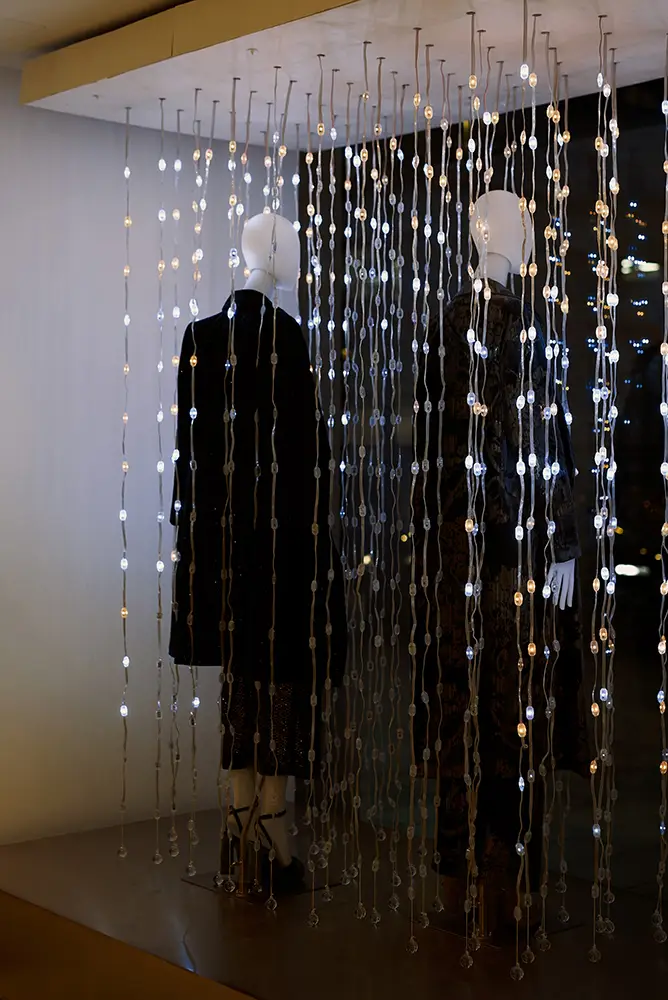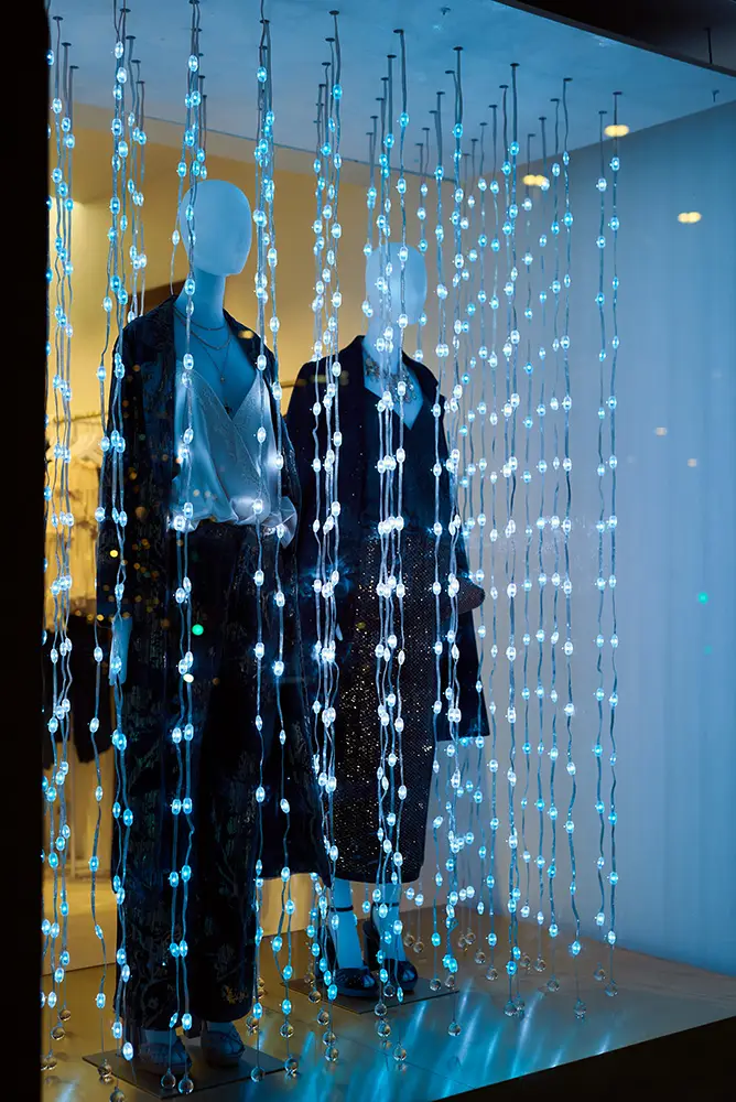 Esta intervención artística transforma el escaparate en un pequeño universo de brillo y emoción, uniendo el espíritu de la firma con la esencia más luminosa de la ciudad. Detrás de esta experiencia sensorial se encuentra el talento de Jana Tox, Interactive Designer & Digital Artist, formada en Diseño Industrial con especialización en Diseño Interactivo.